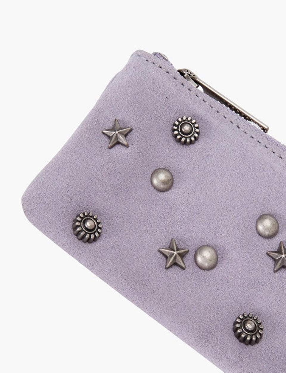 FULL STUD ZIPPER WALLET_lavender grey studded suede