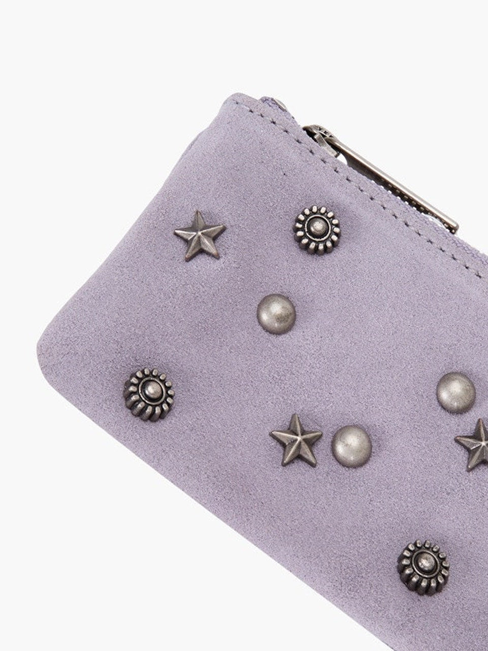 FULL STUD ZIPPER WALLET_lavender grey studded suede