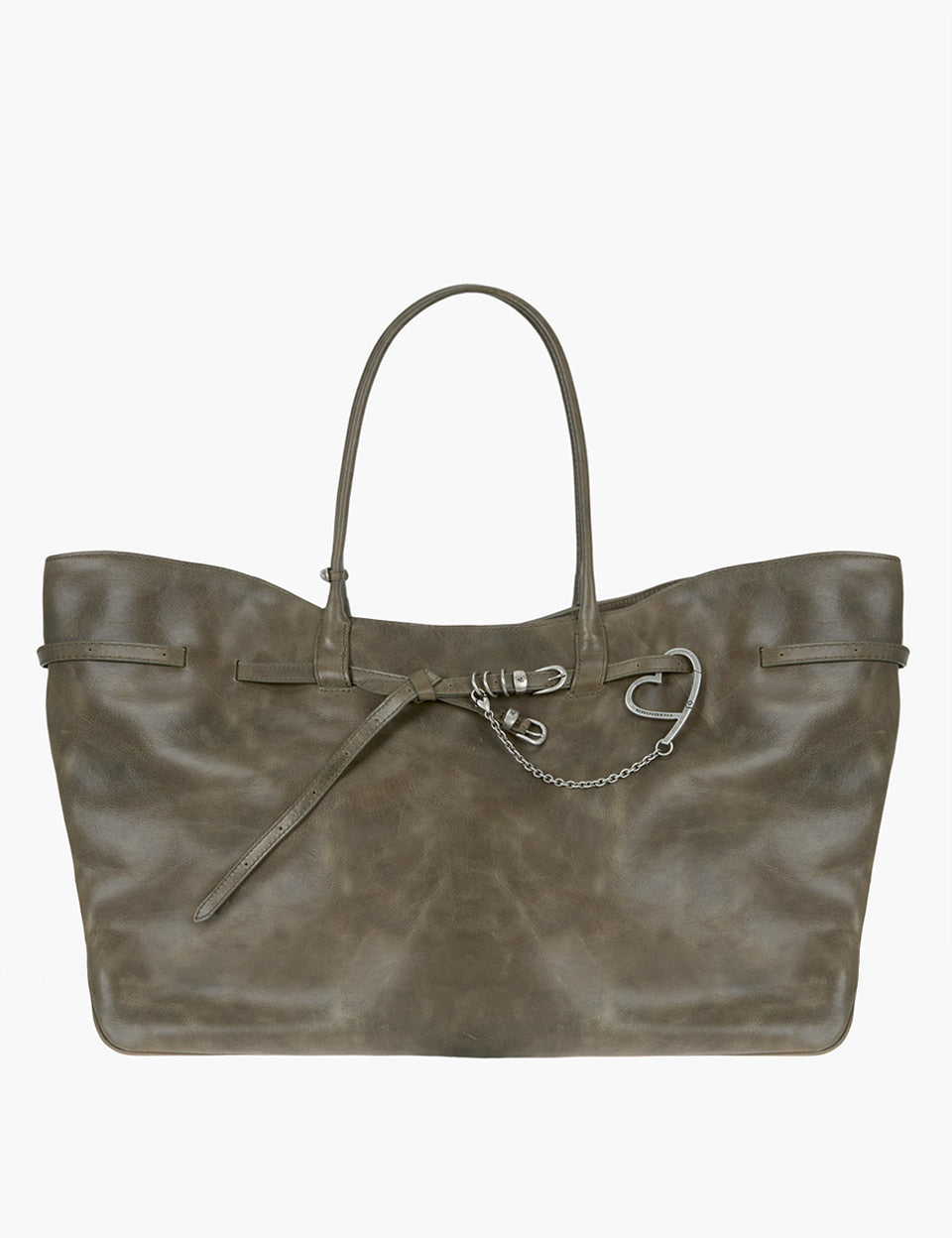 SHEARLING DRAWSTRING POUCH_beige shearling+chestnut nubuck