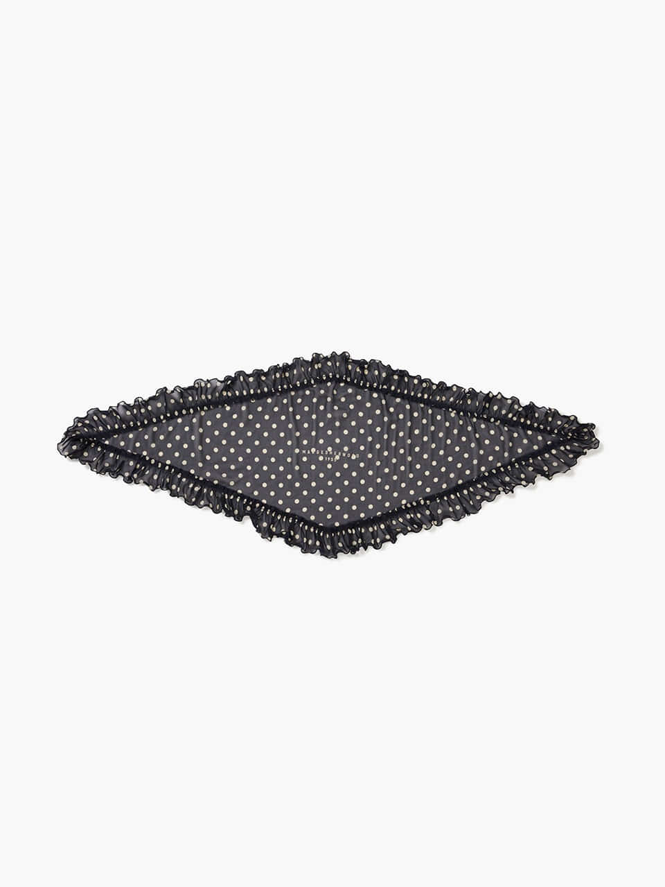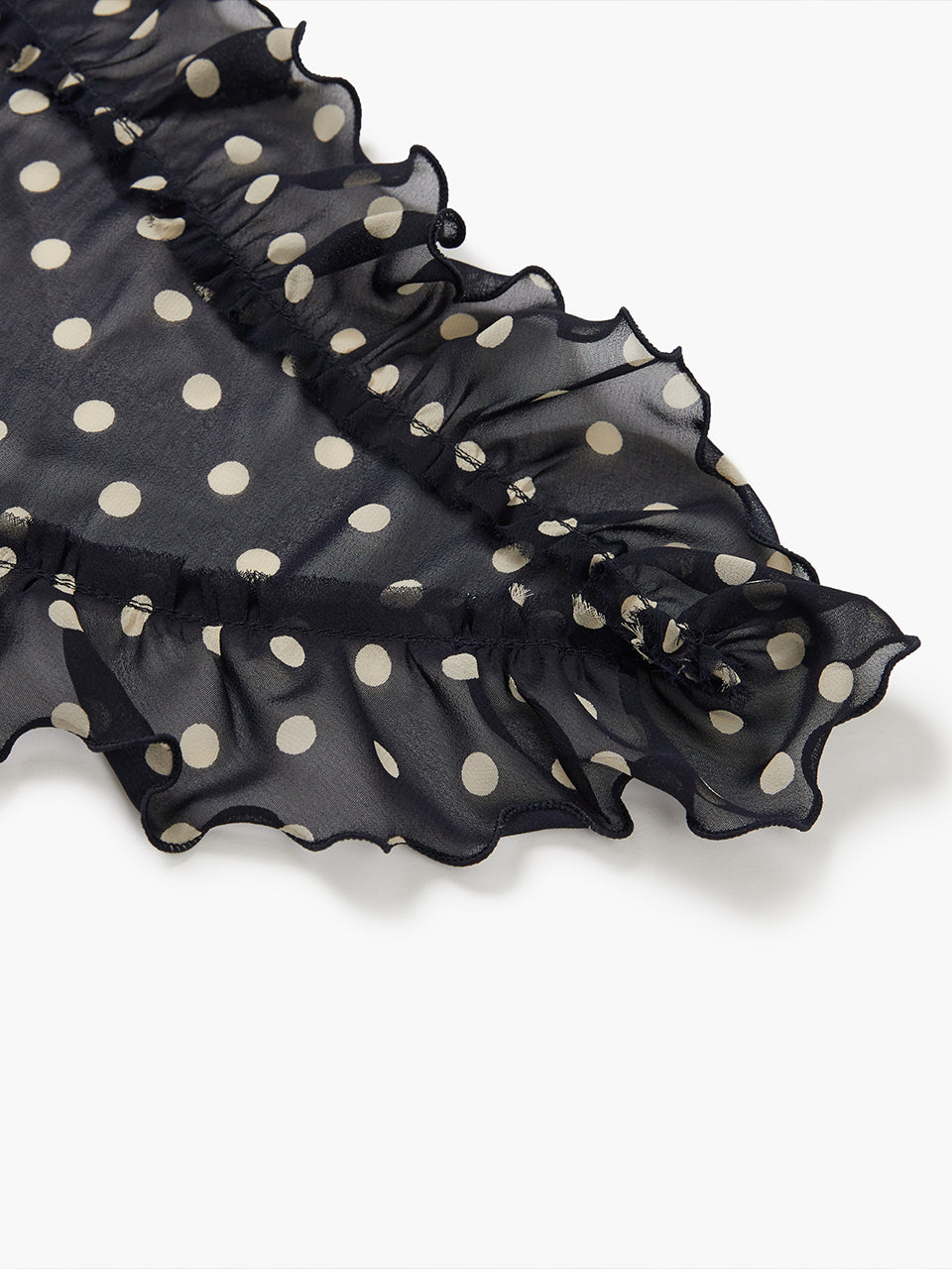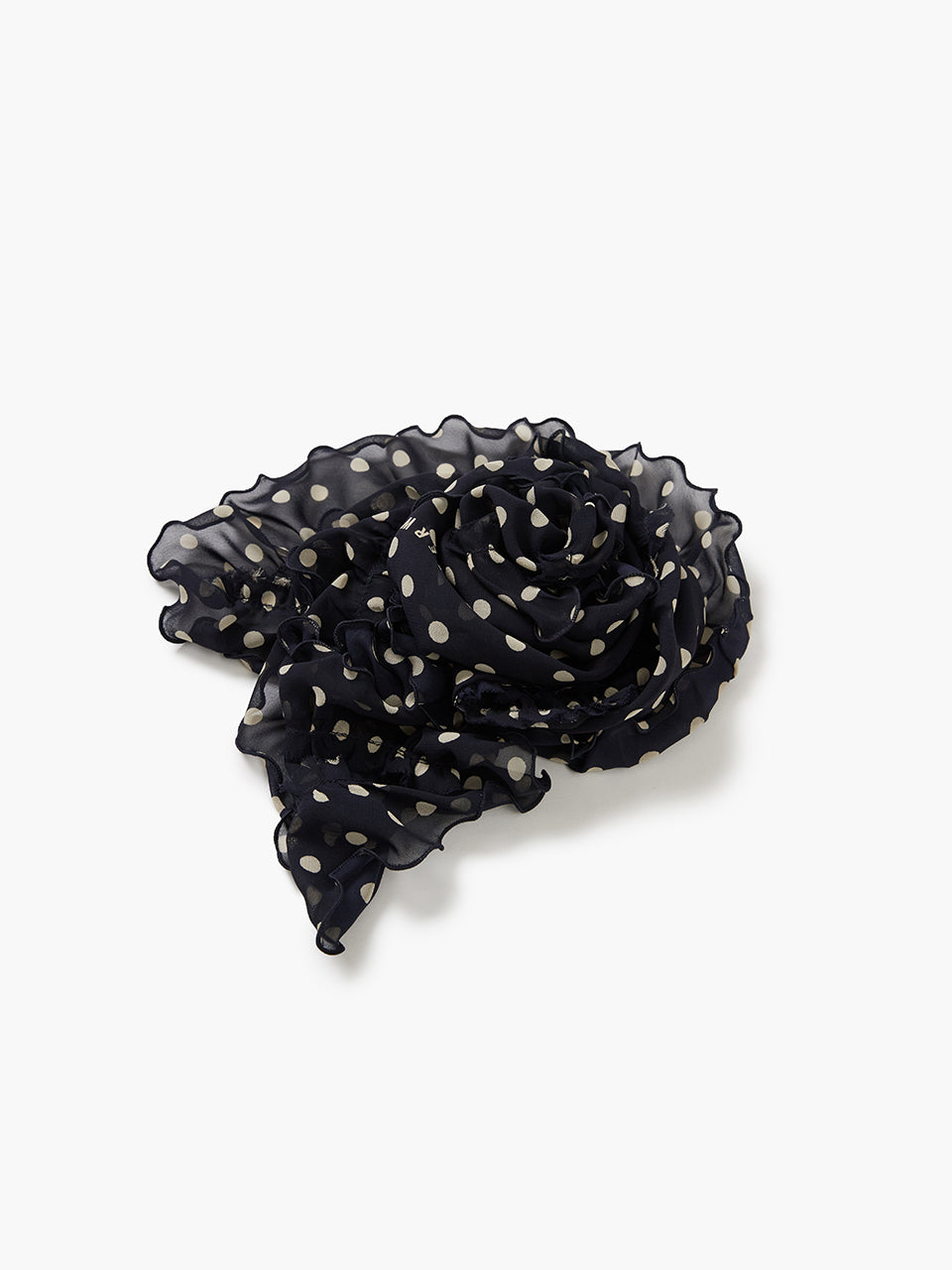 - Vintage-inspired scarf with a polka dot pattern and frill details