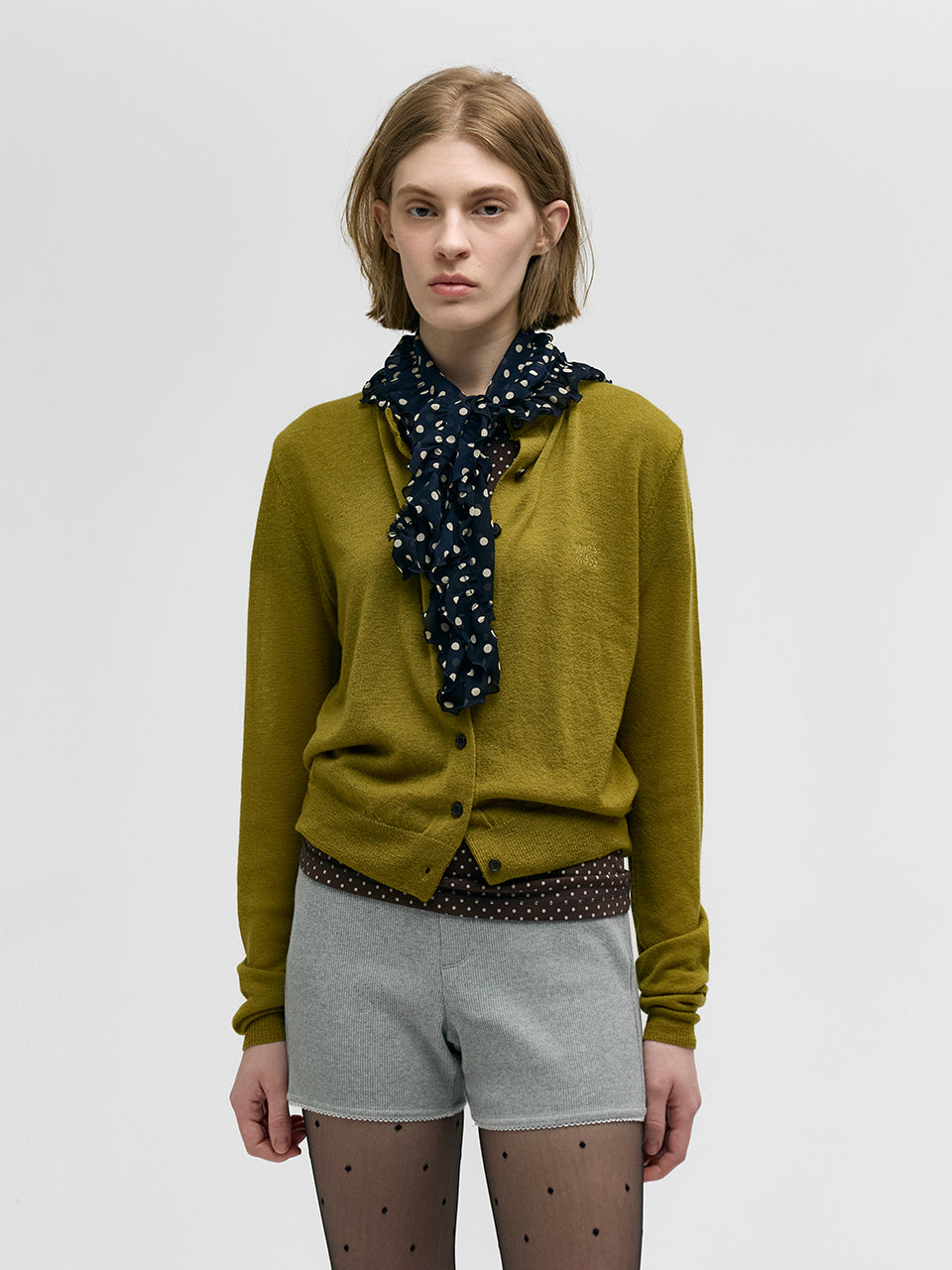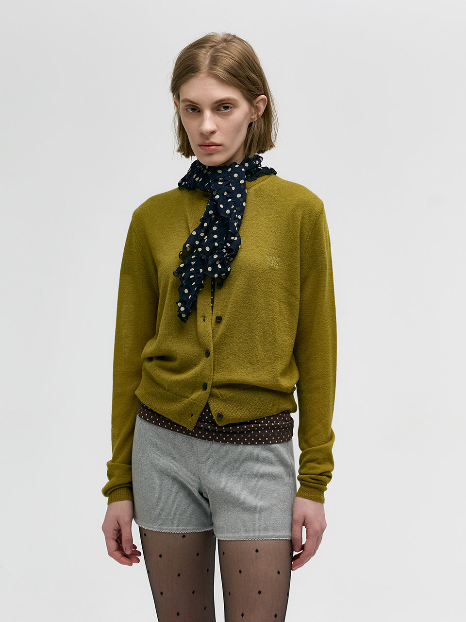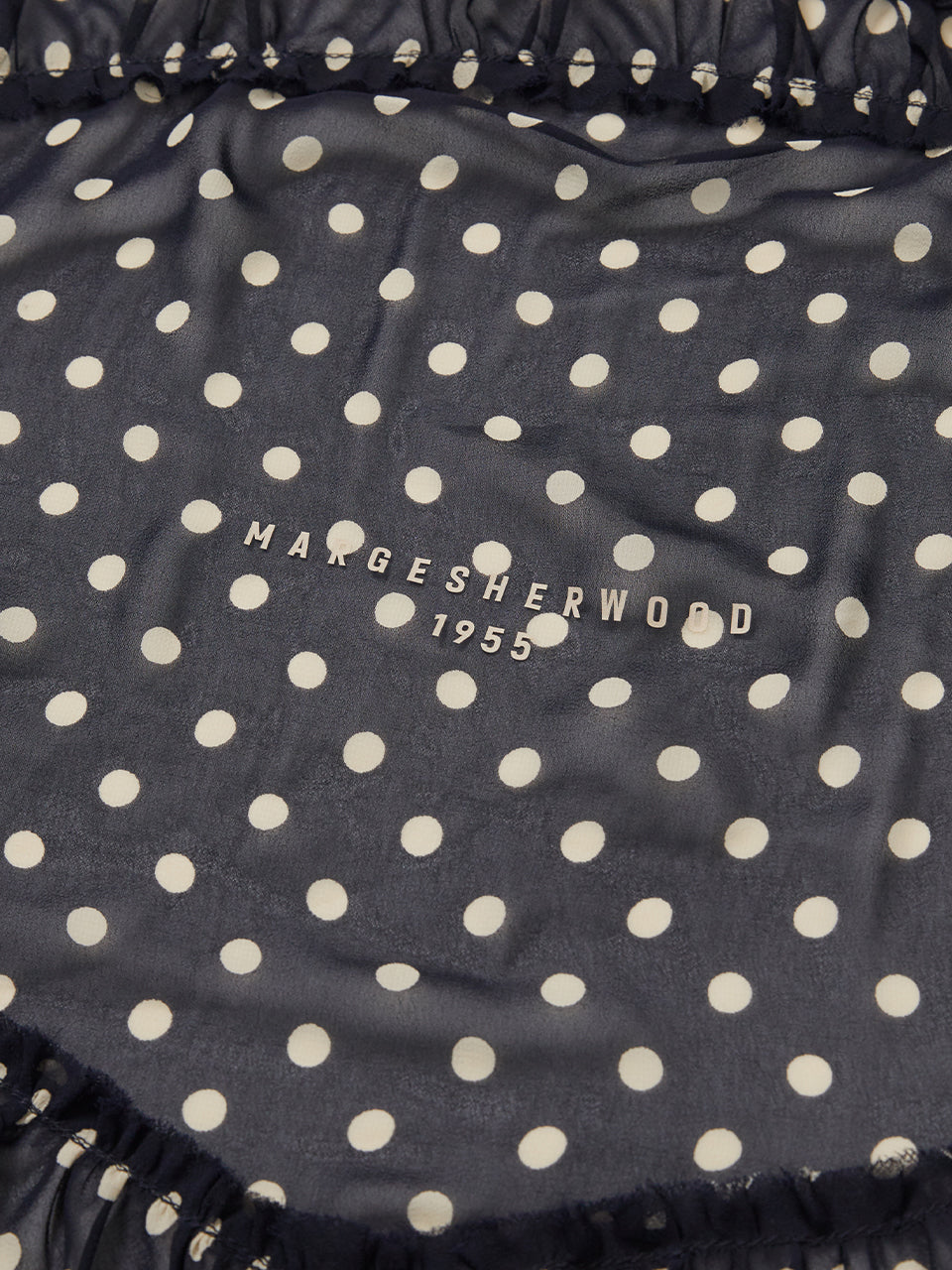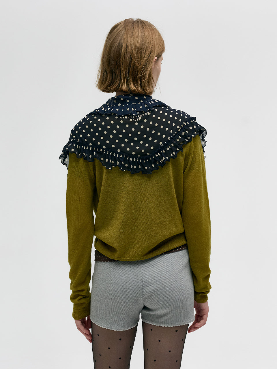 - Vintage-inspired scarf with a polka dot pattern and frill details