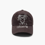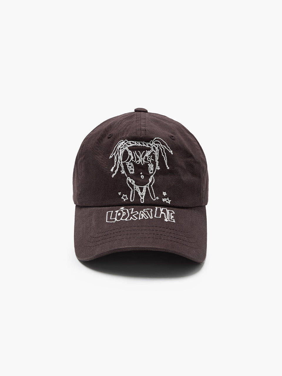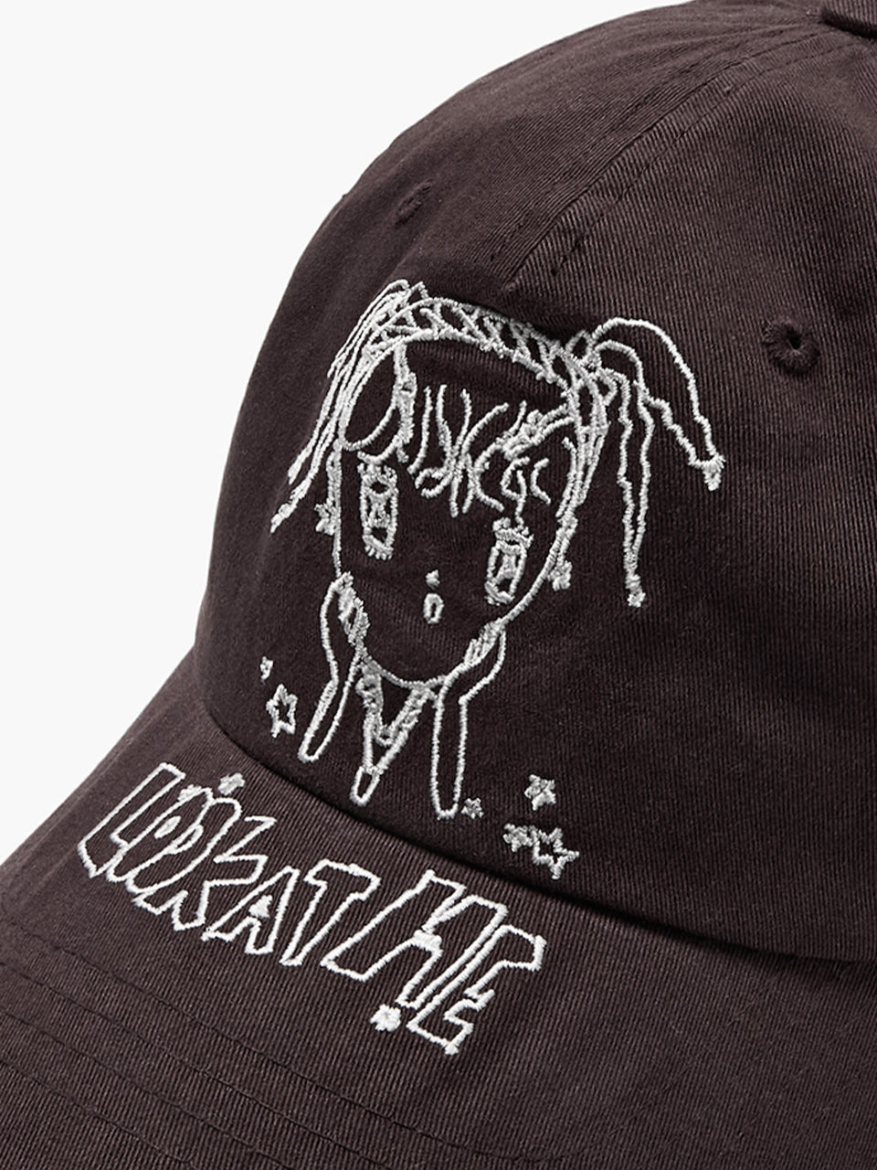 · A ball cap featuring colorful embroidery with a hand-drawn feel