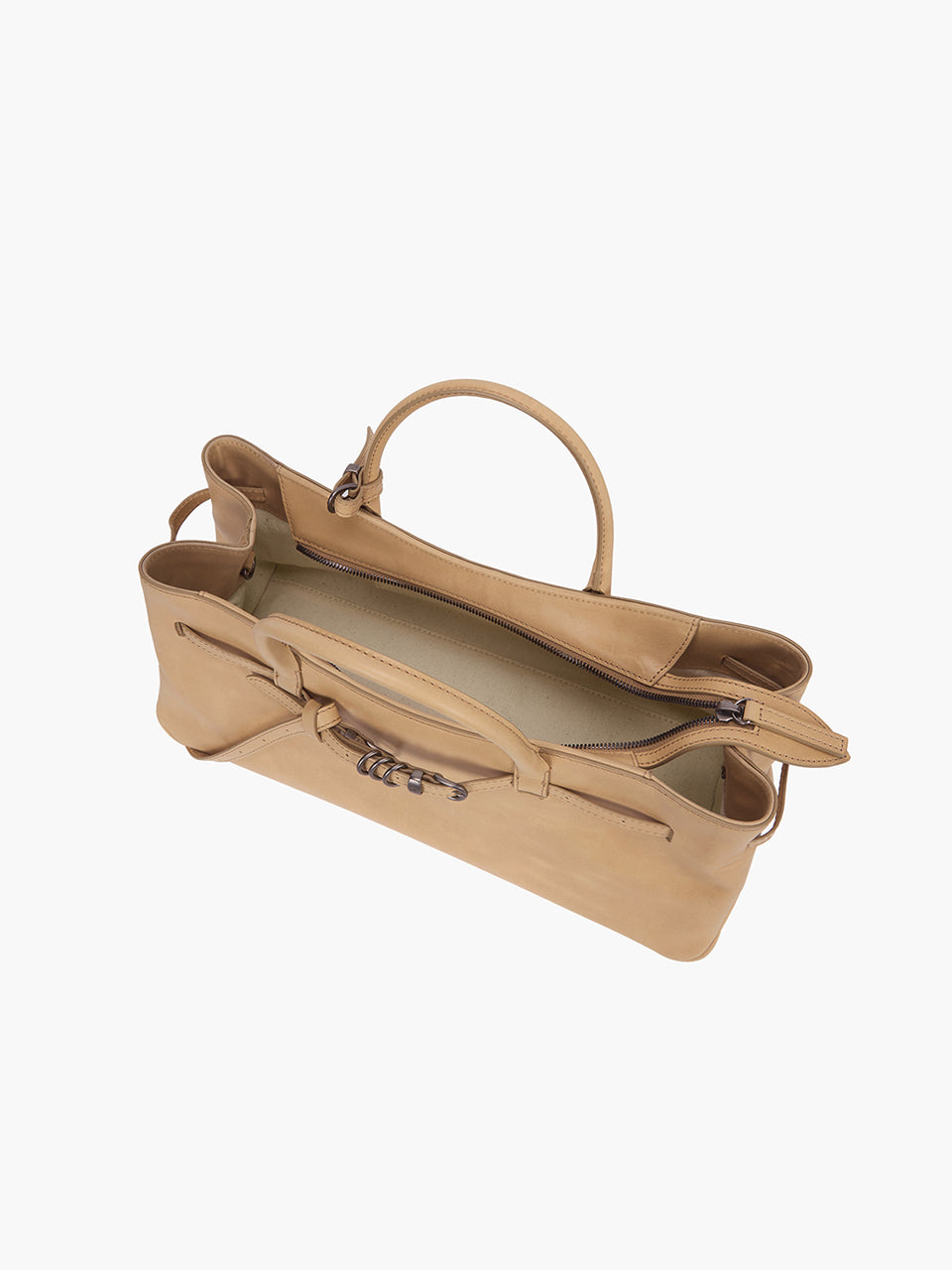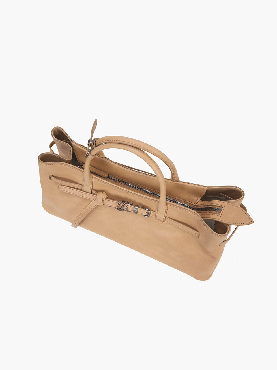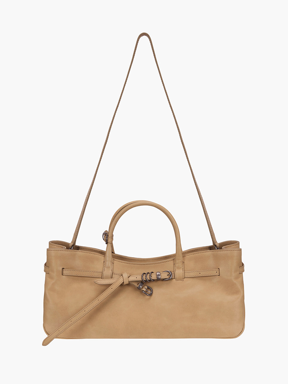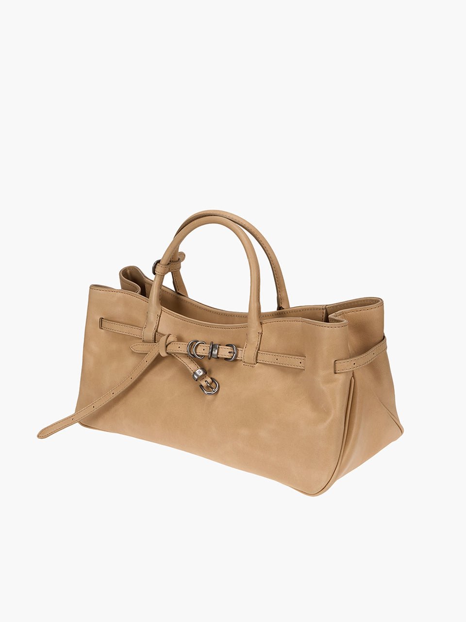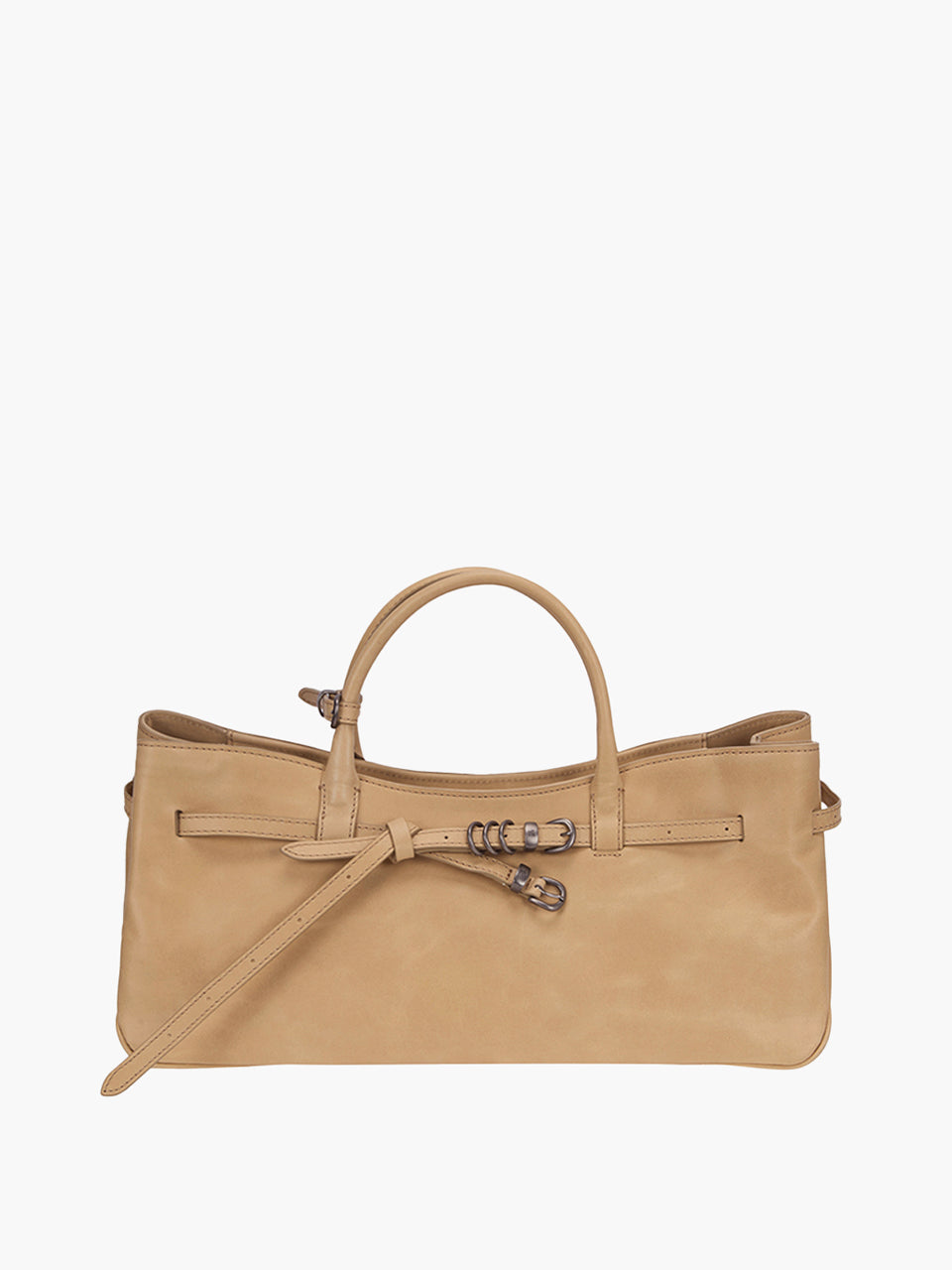 · East-west structured bag featuring a knotted belt strap