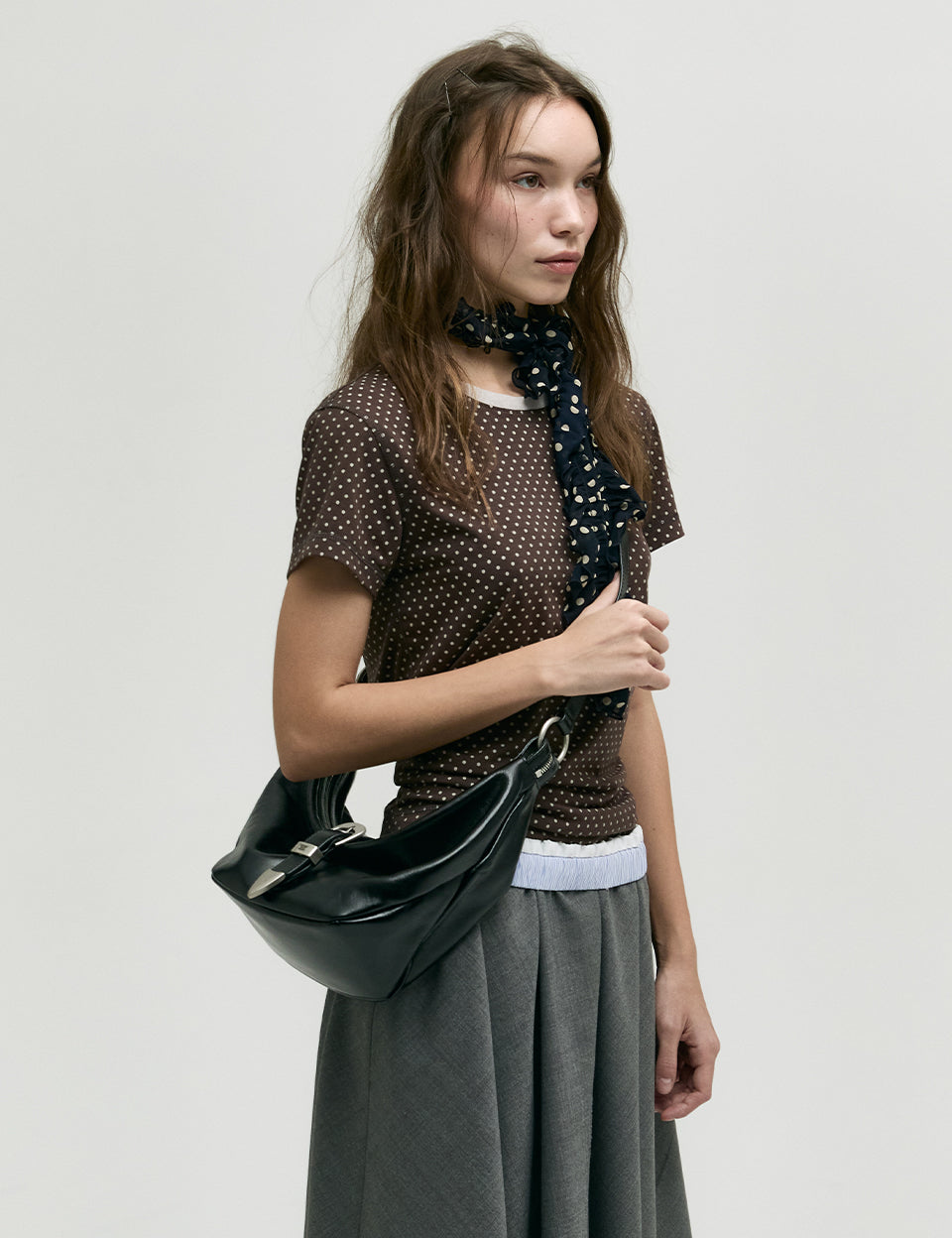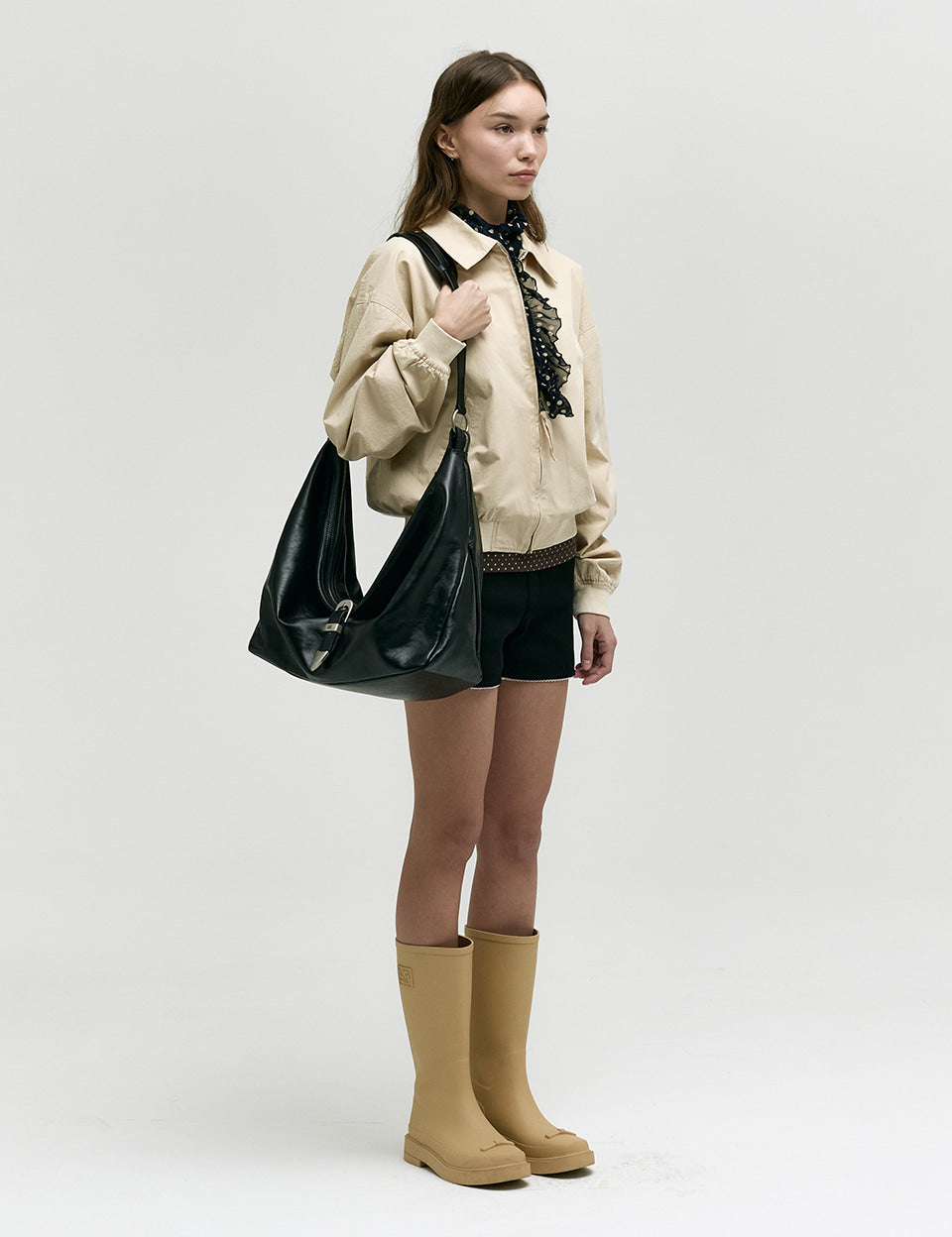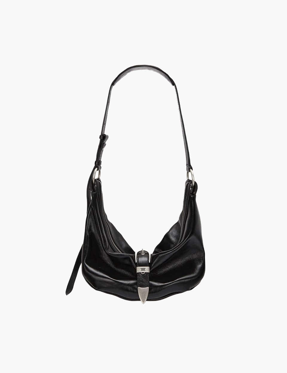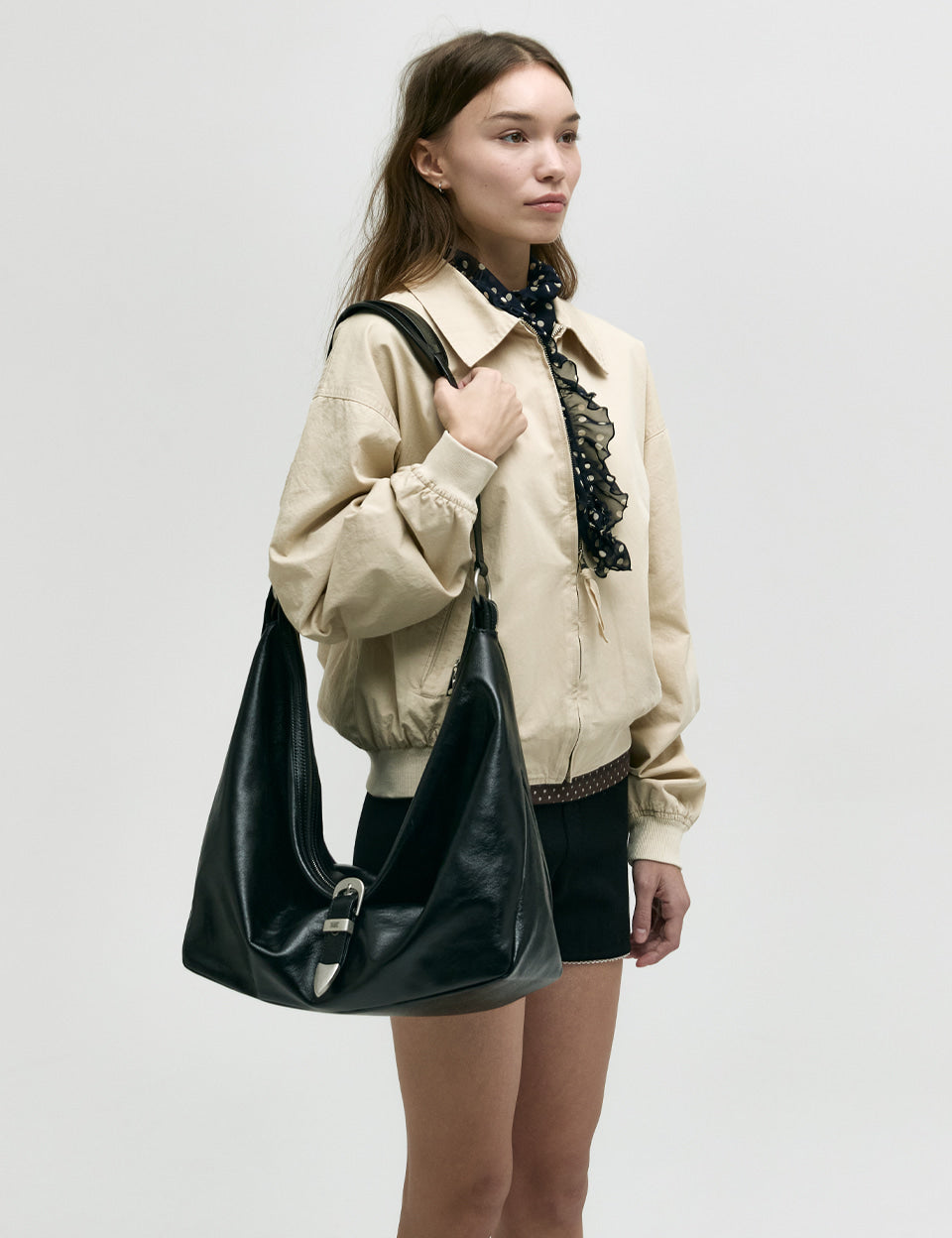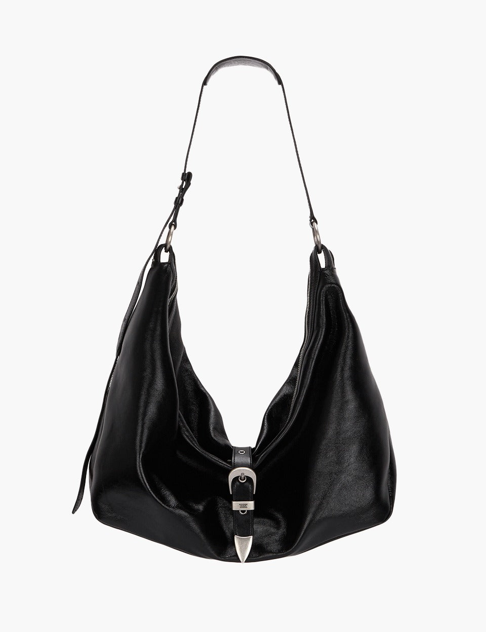 BELTED HOBO_black glossy plain