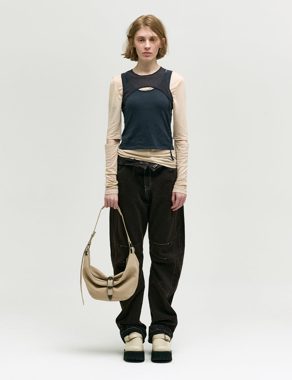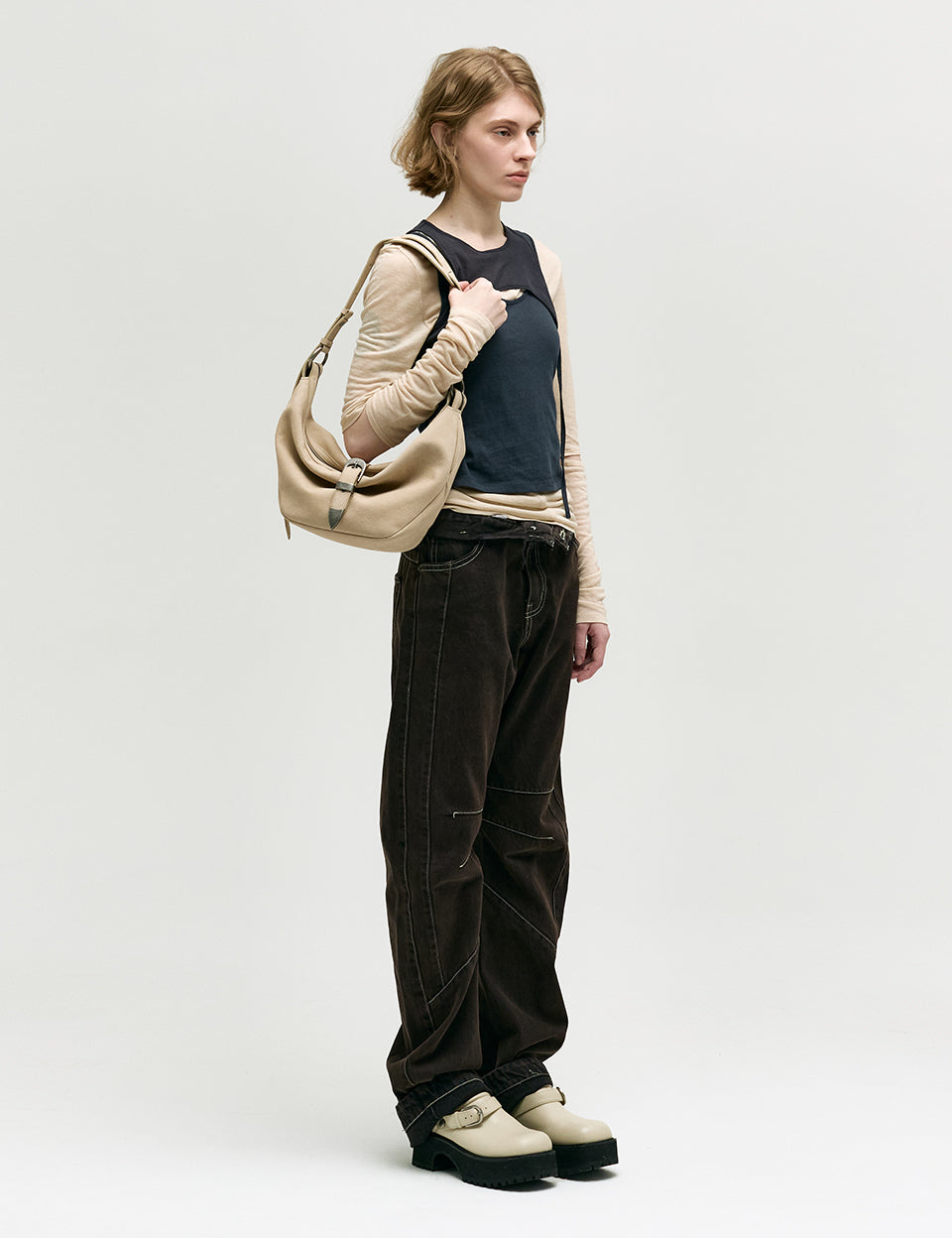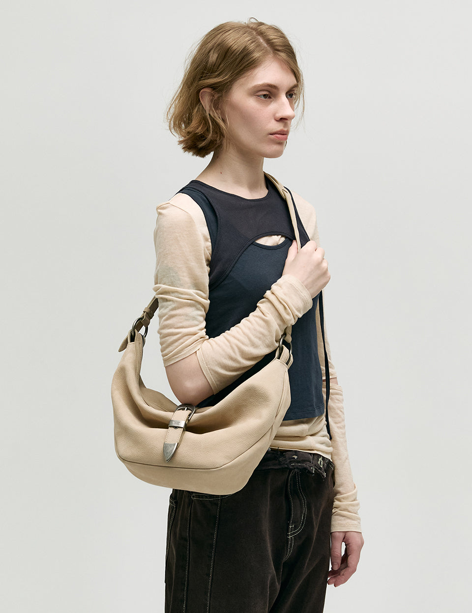 BELTED HOBO_nude nubuck