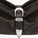 BELTED HOBO MEDIUM_brown+black two-tone cracked