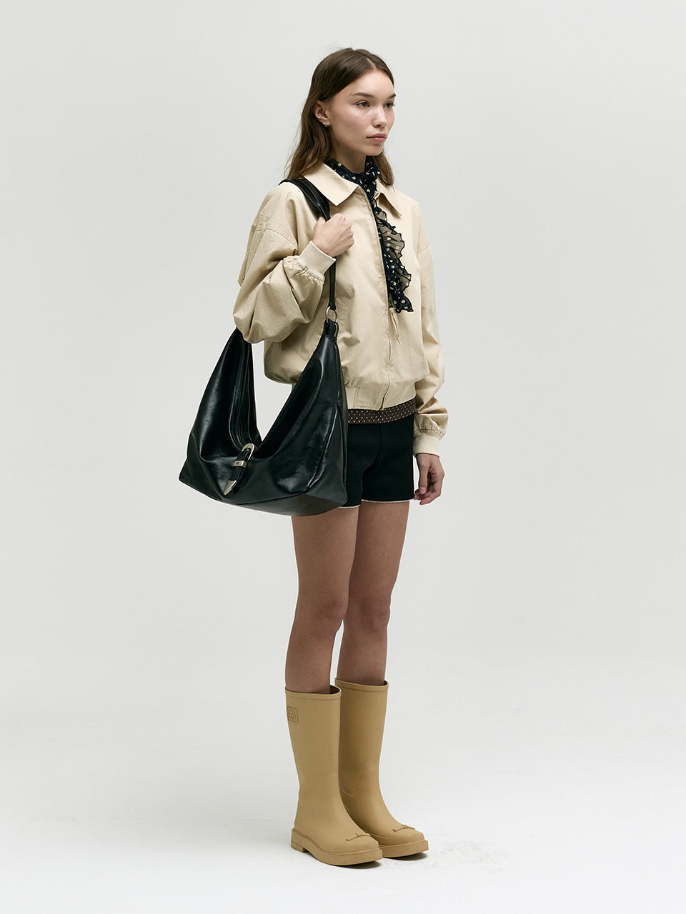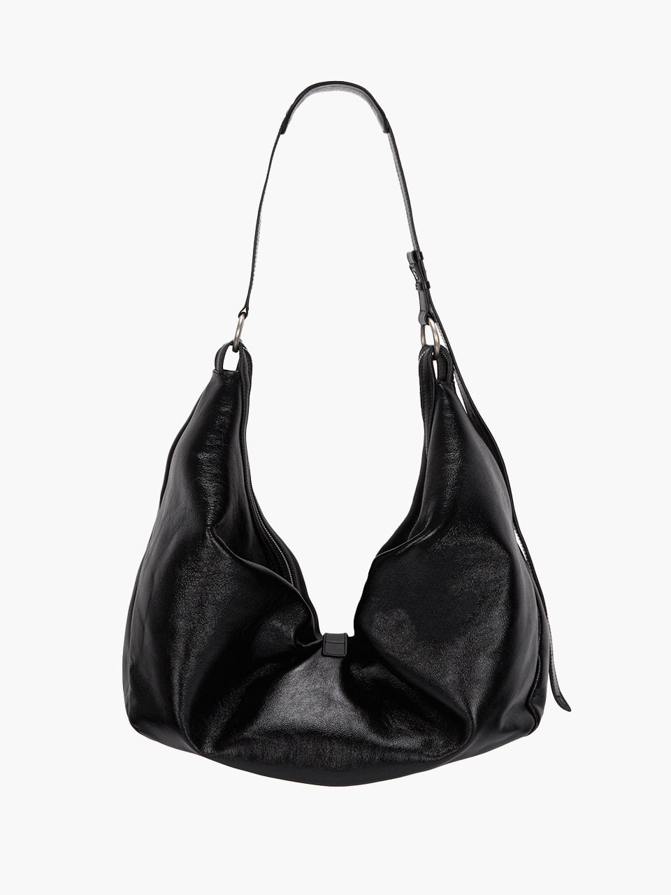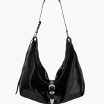 - Large sized slouchy hobo bag featuring belted strap with metal buckle and Margesherwood logo engraved keeper loop