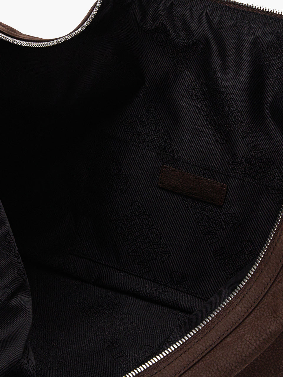 - Large sized slouchy hobo bag featuring belted strap with metal buckle and Margesherwood logo engraved keeper loop
