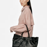 · A tote bag featuring a knotted belt strap