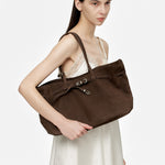 · Pull the knot details on both sides to adjust the belt strap length and shape of the bag