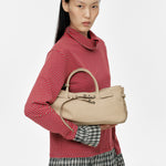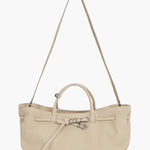 · Pull the knot details on both sides to adjust the belt strap length and shape of the bag
