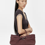 · Pull the knot details on both sides to adjust the belt strap length and shape of the bag
