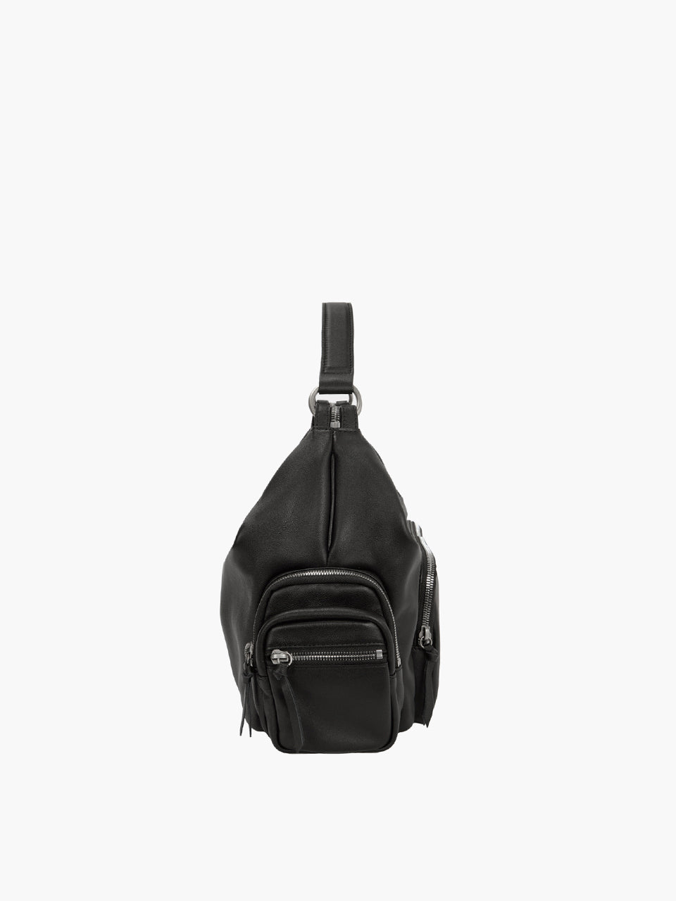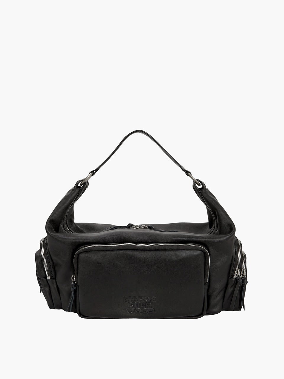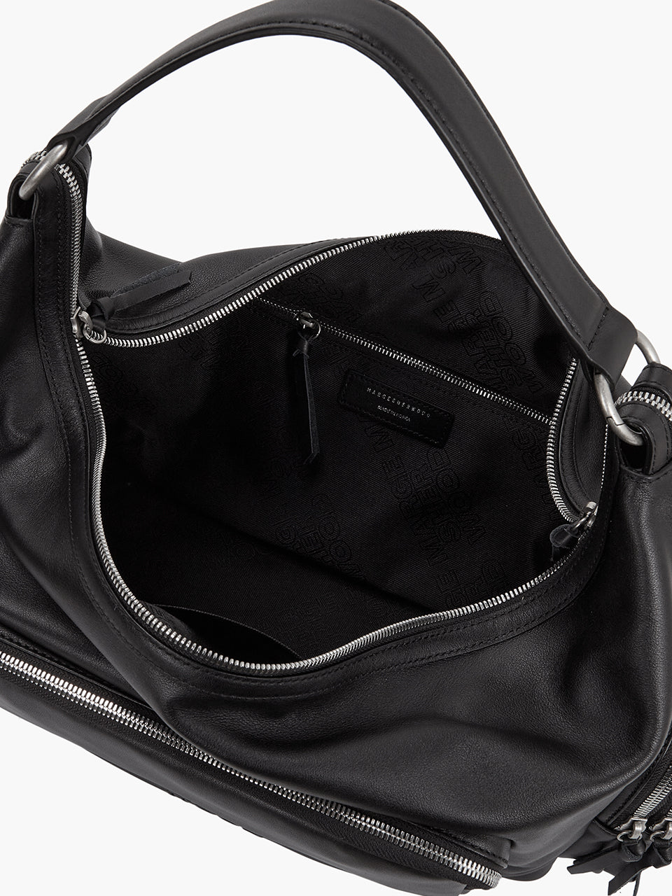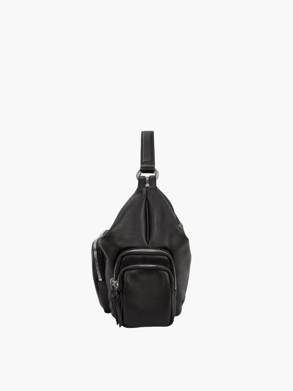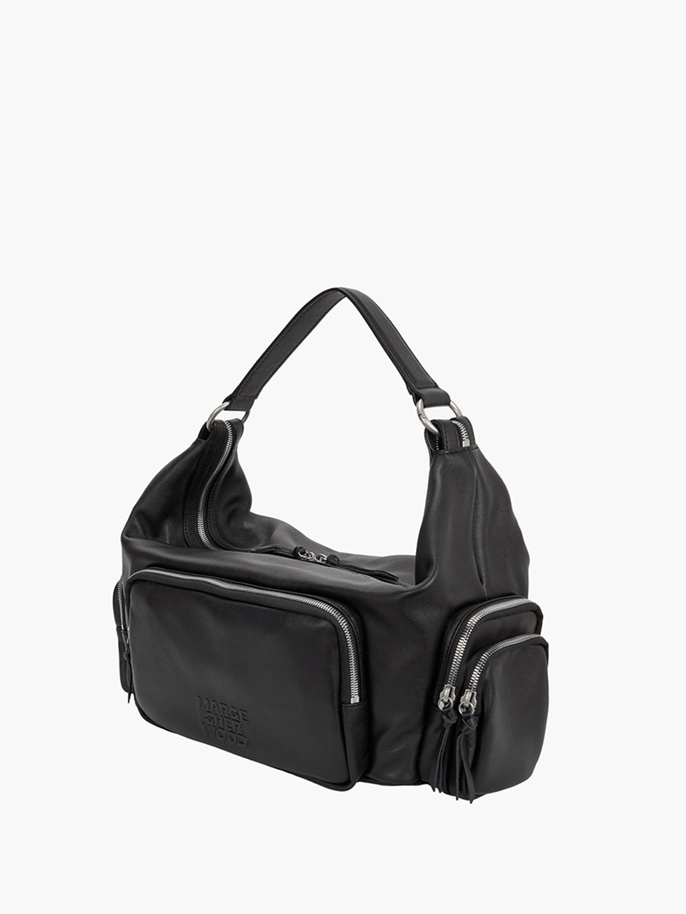 · East-west structured slouchy hobo bag featuring an array of pockets