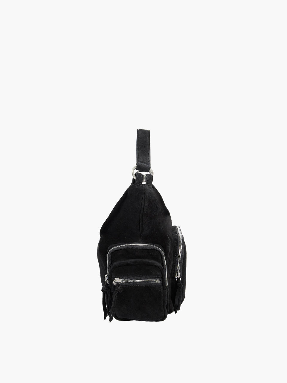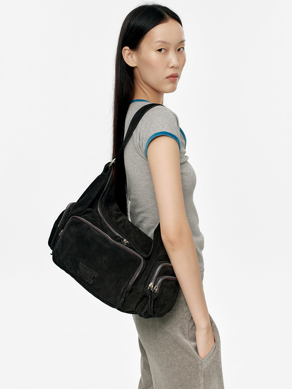 · East-west structured slouchy hobo bag featuring an array of pockets