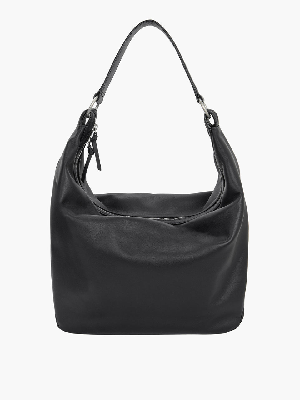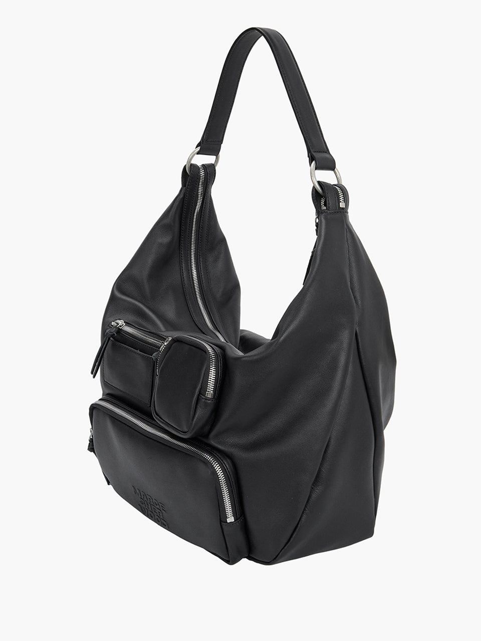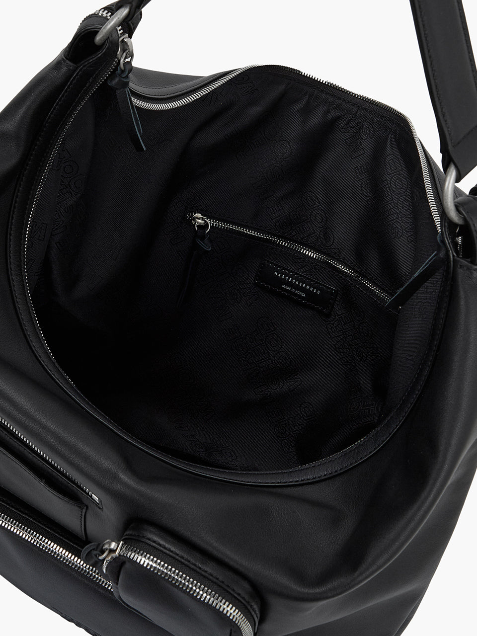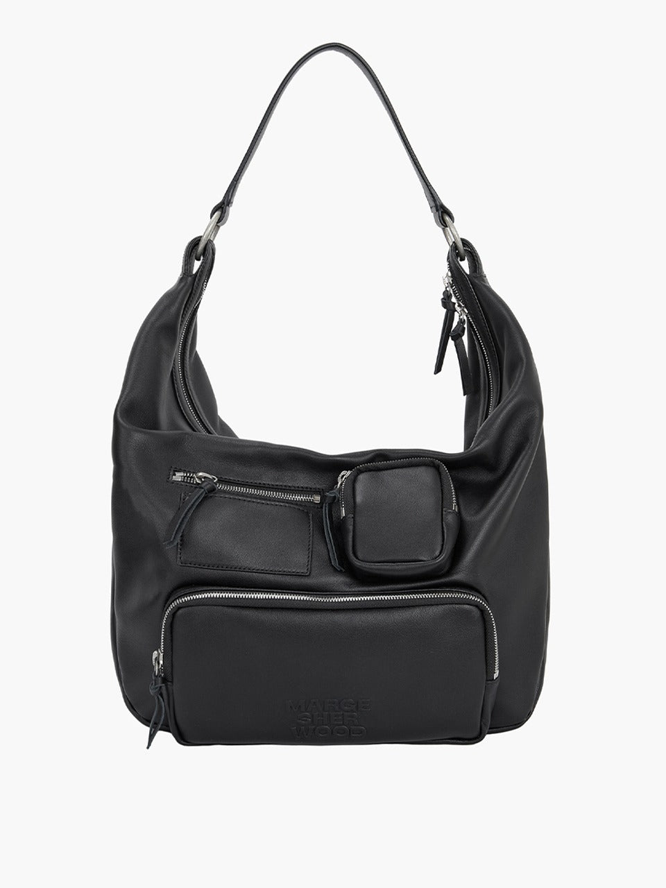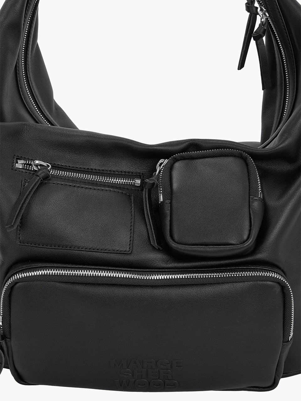 · North-south structured slouchy hobo bag featuring an array of pockets