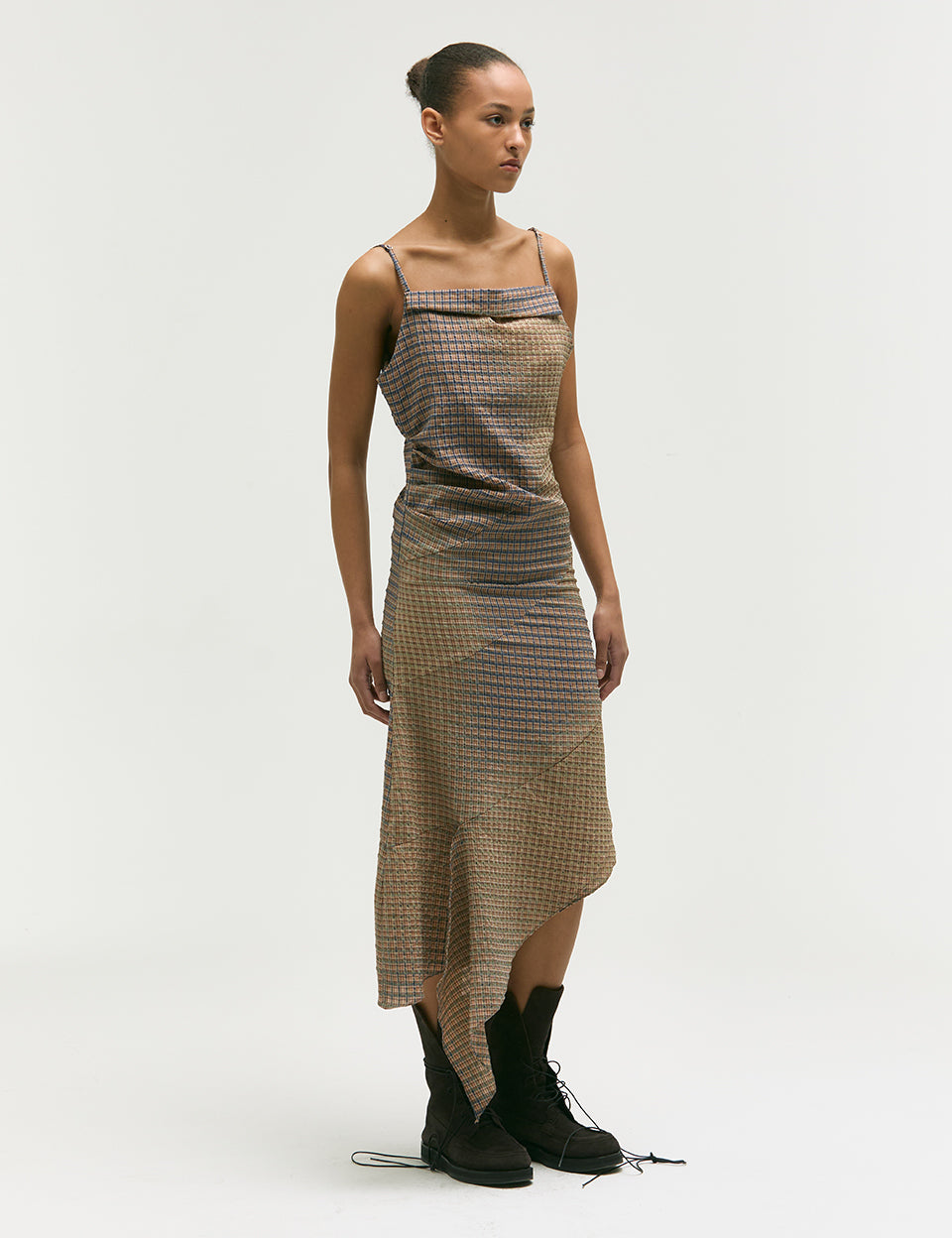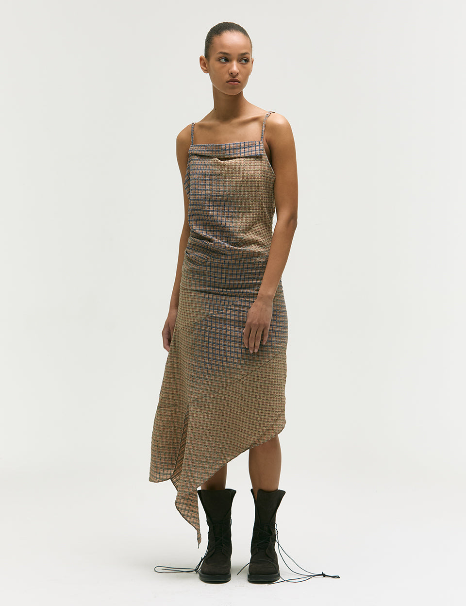 BLEACHED CHECK DRESS_beige