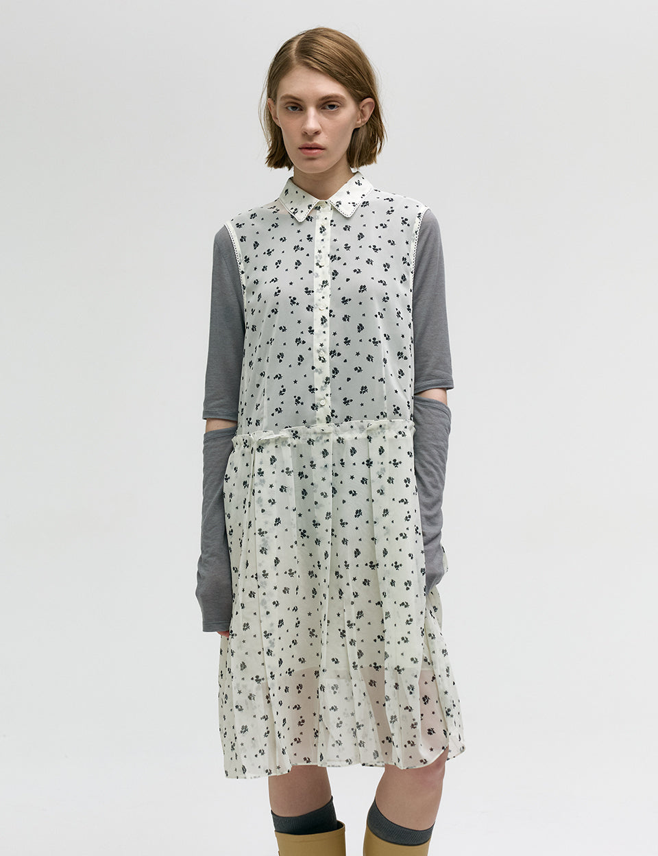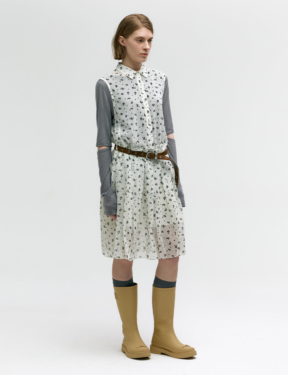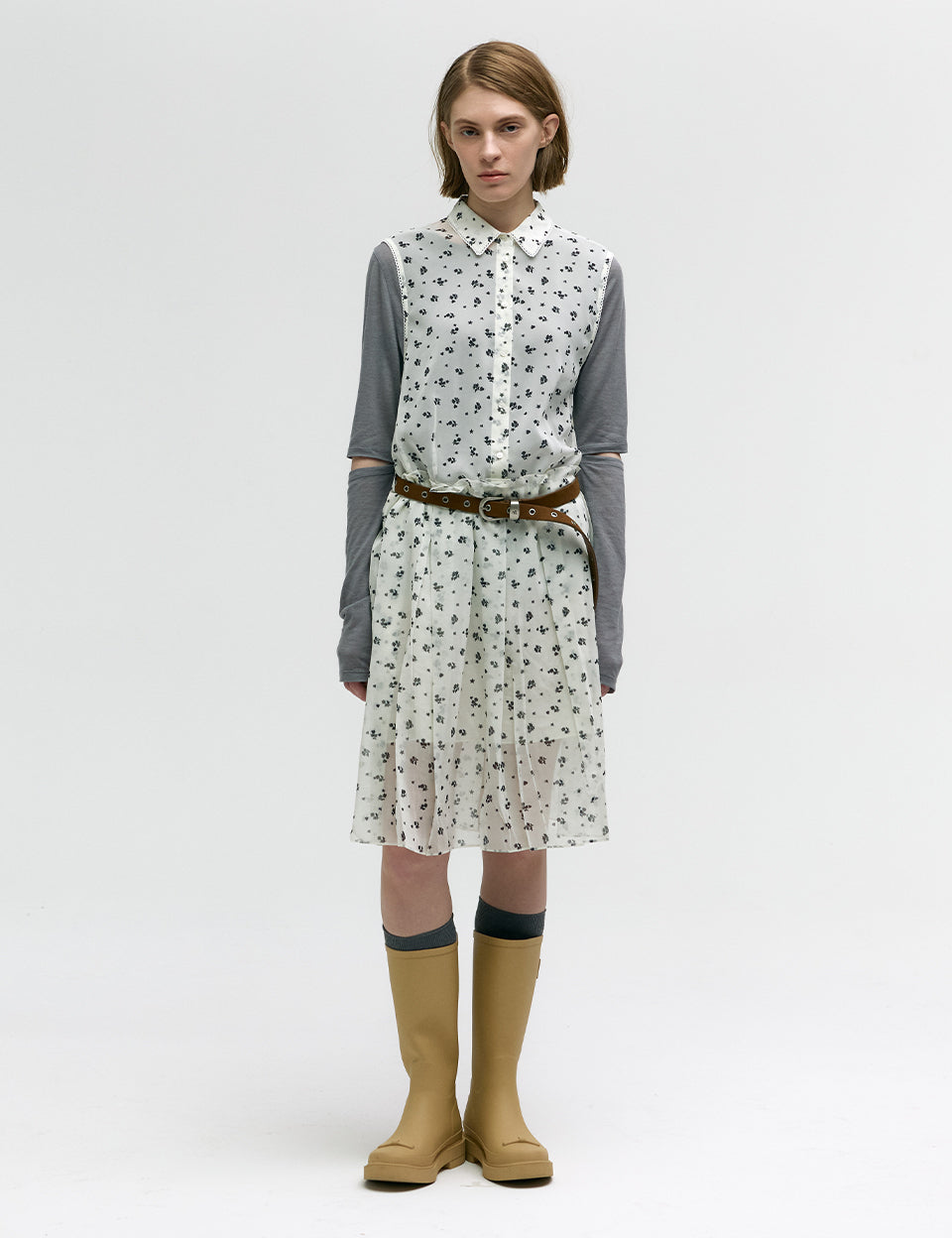 PRINTED PLEATS ONE-PIECE_beige