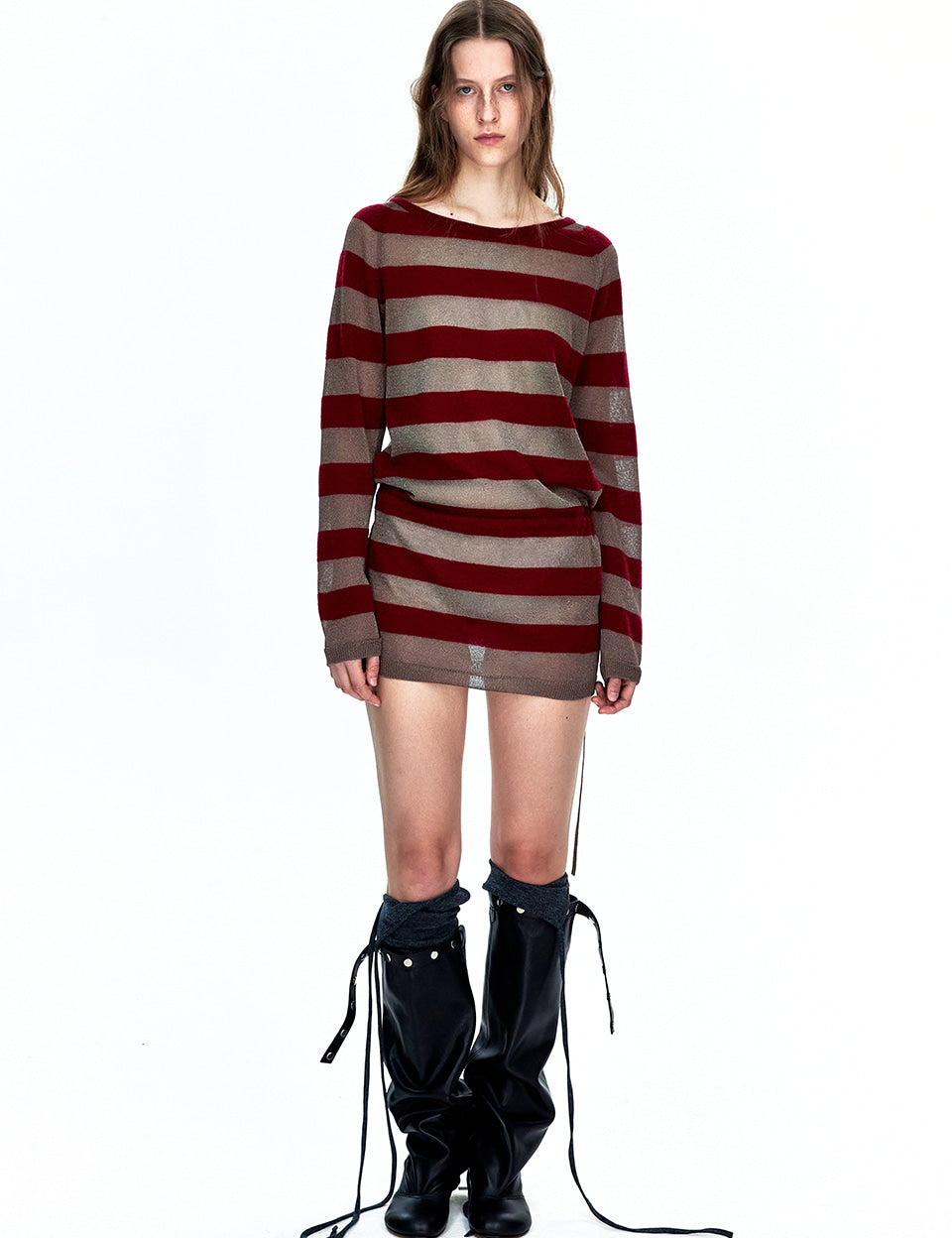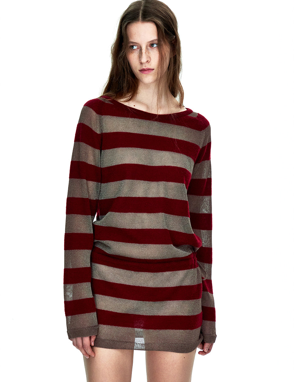 METALLIC STRIPE KNIT DRESS_burgundy