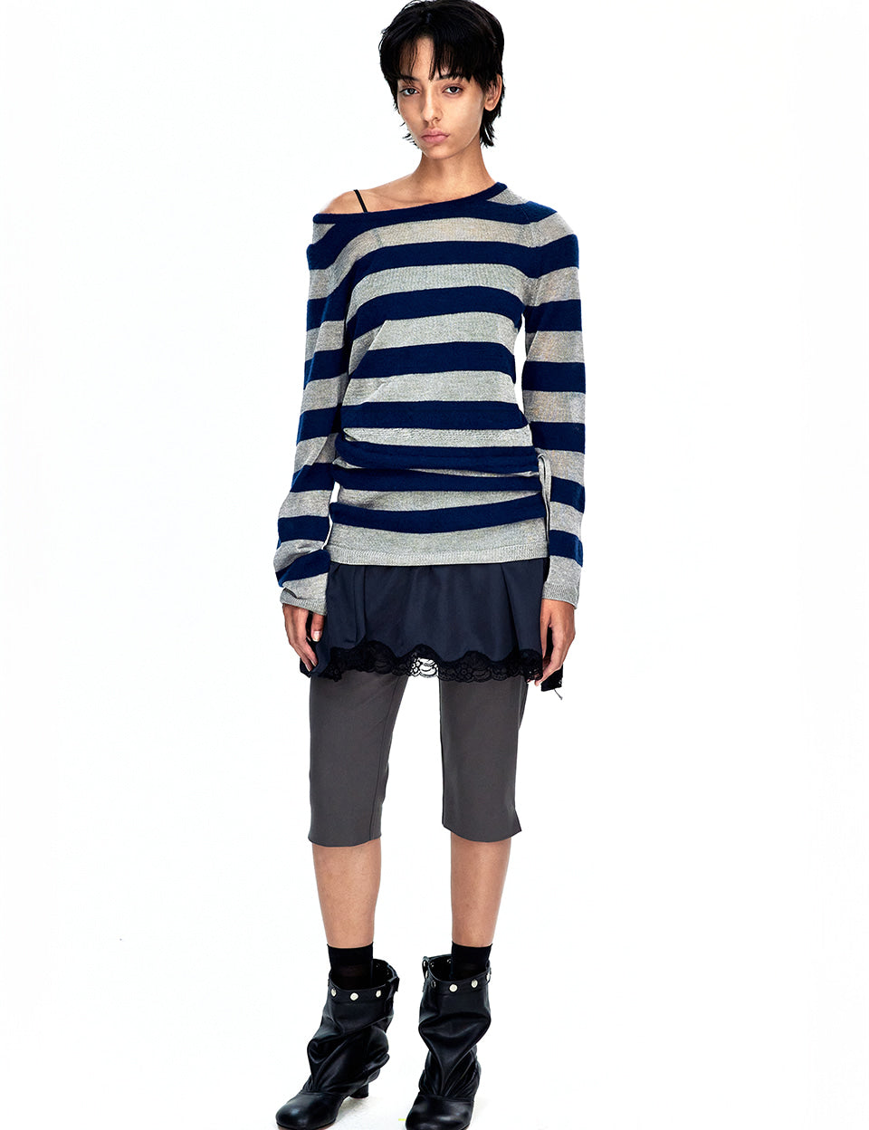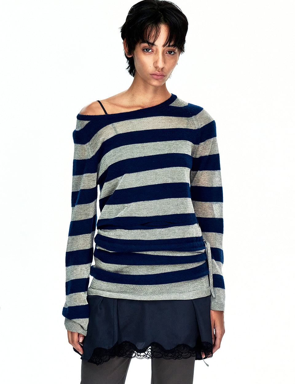 METALLIC STRIPE KNIT DRESS_navy