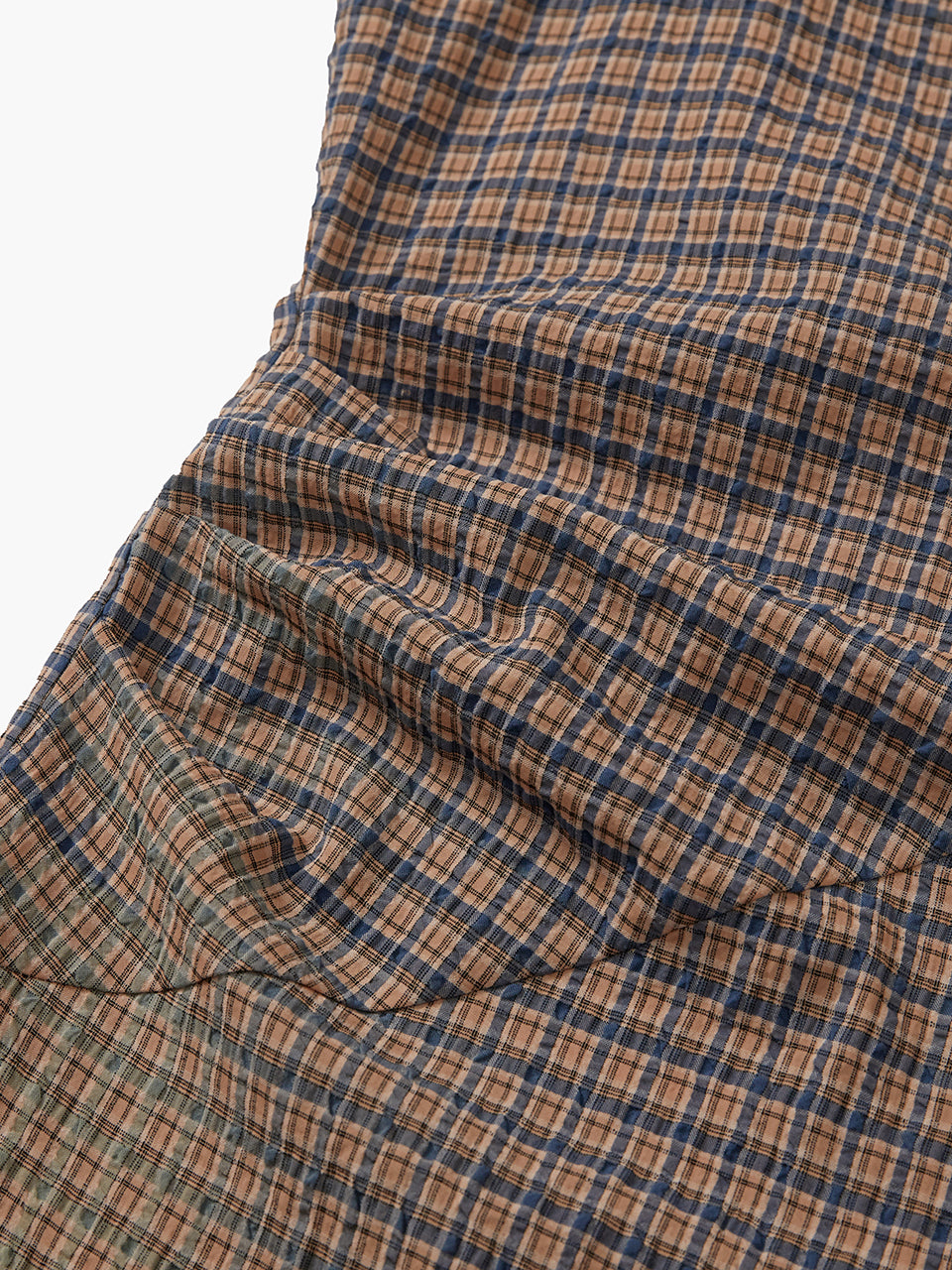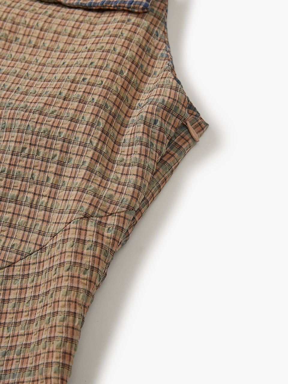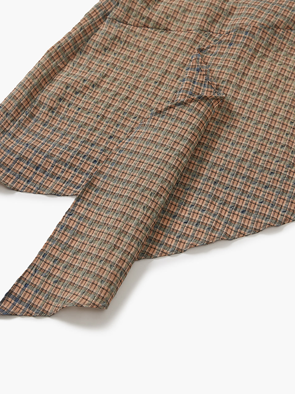 - Casual mood check dress featuring garment gradient bleach washing on a charming color-blocked check fabric
