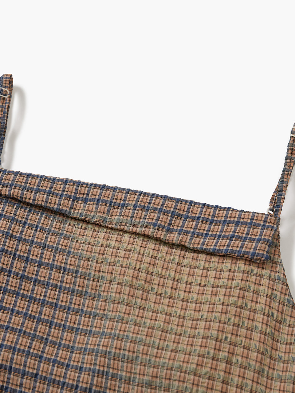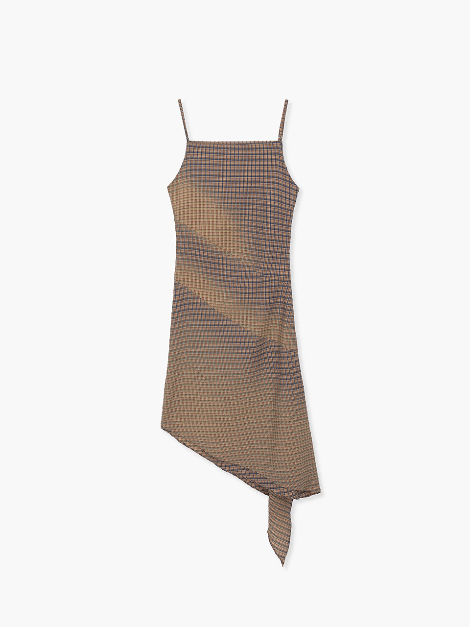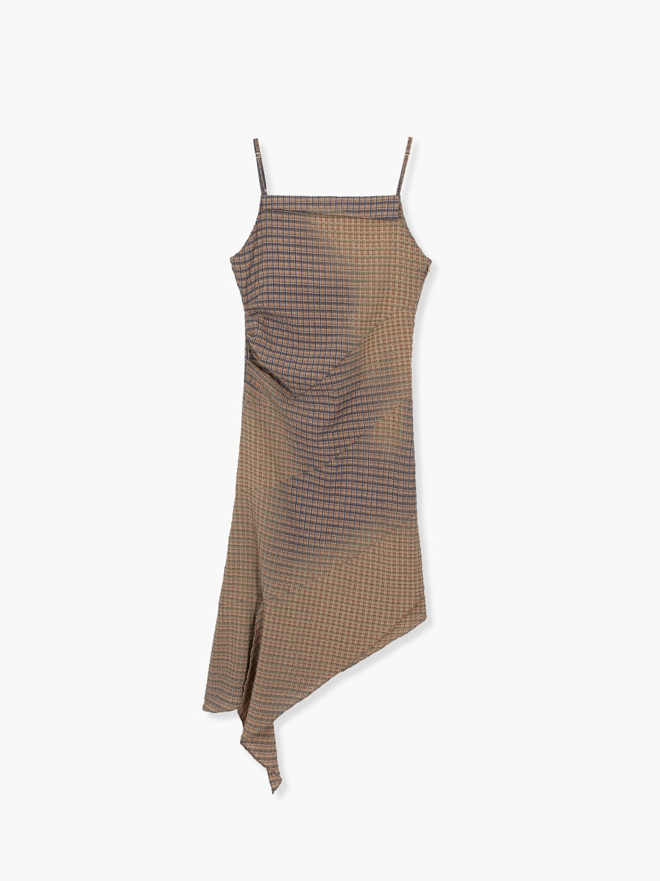 - Casual mood check dress featuring garment gradient bleach washing on a charming color-blocked check fabric