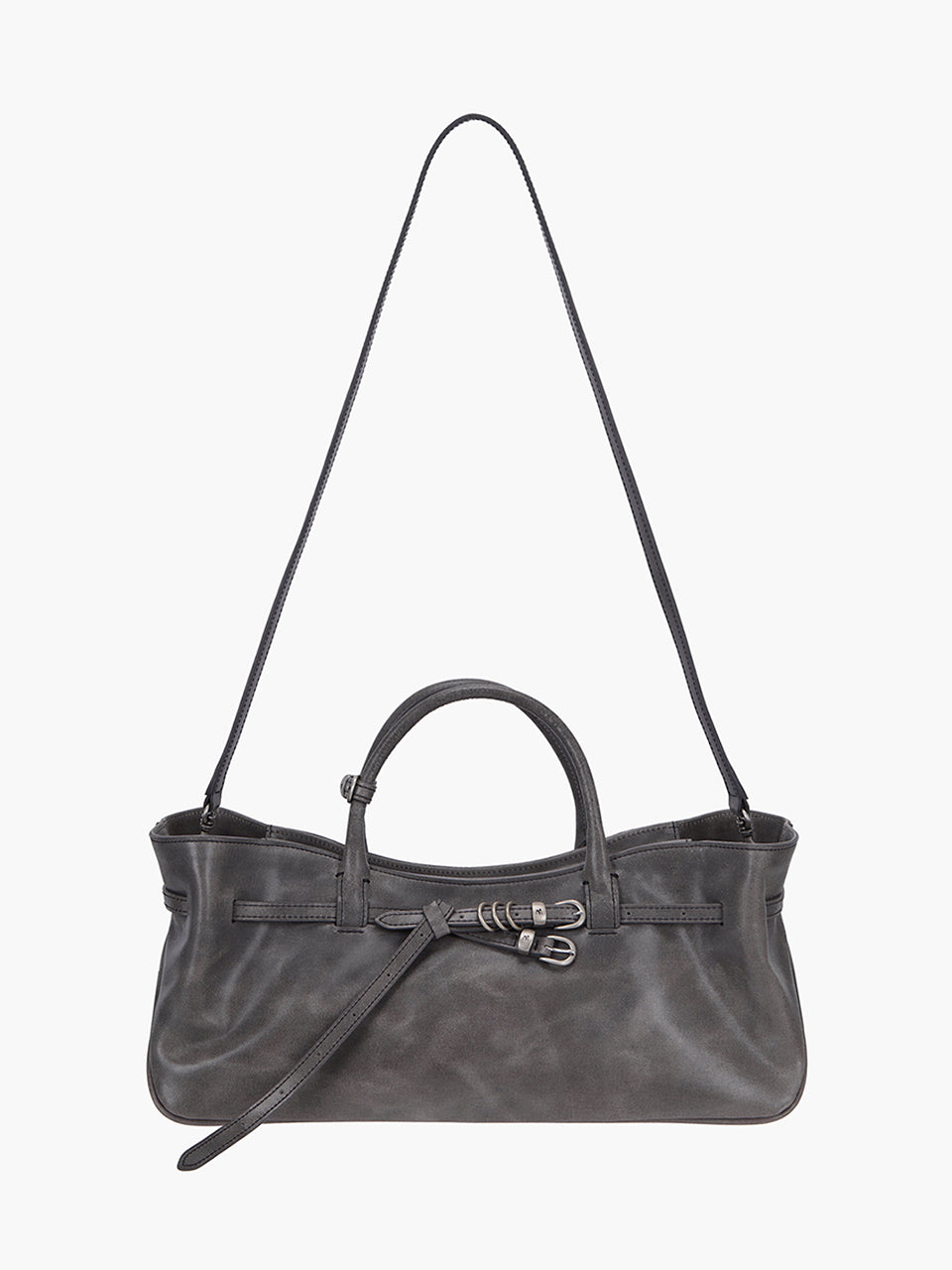 · East-west structured bag featuring a knotted belt strap