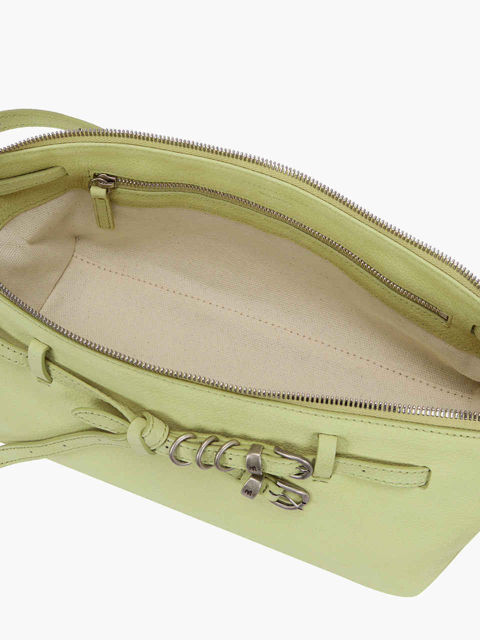 · Pull the belt straps to style the bag as a tote.