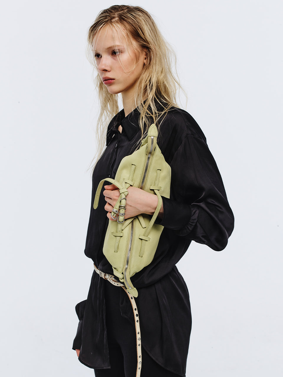 · A sling bag featuring a knotted belt strap