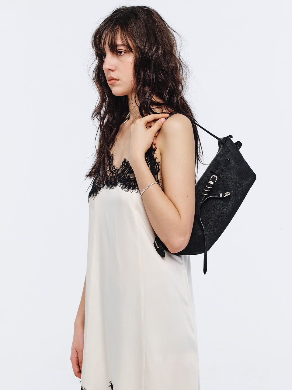 This product is made from genuine leather. Exposure to moisture or chemicals such as detergents, alcohol, oils, or cosmetics may cause discoloration, staining, or damage. As these issues are difficult to restore and cannot be repaired, please handle the product with care.