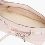 · Pull the belt straps to style the bag as a tote.