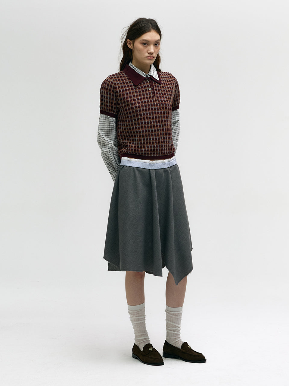 [1] LENGTH: 49/ SHOULDER: 35/ CHEST: 45/ HEM: 40/ ARMHOLE: 22/ SLEEVE LENGTH: 18/ SLEEVE HEM: 12