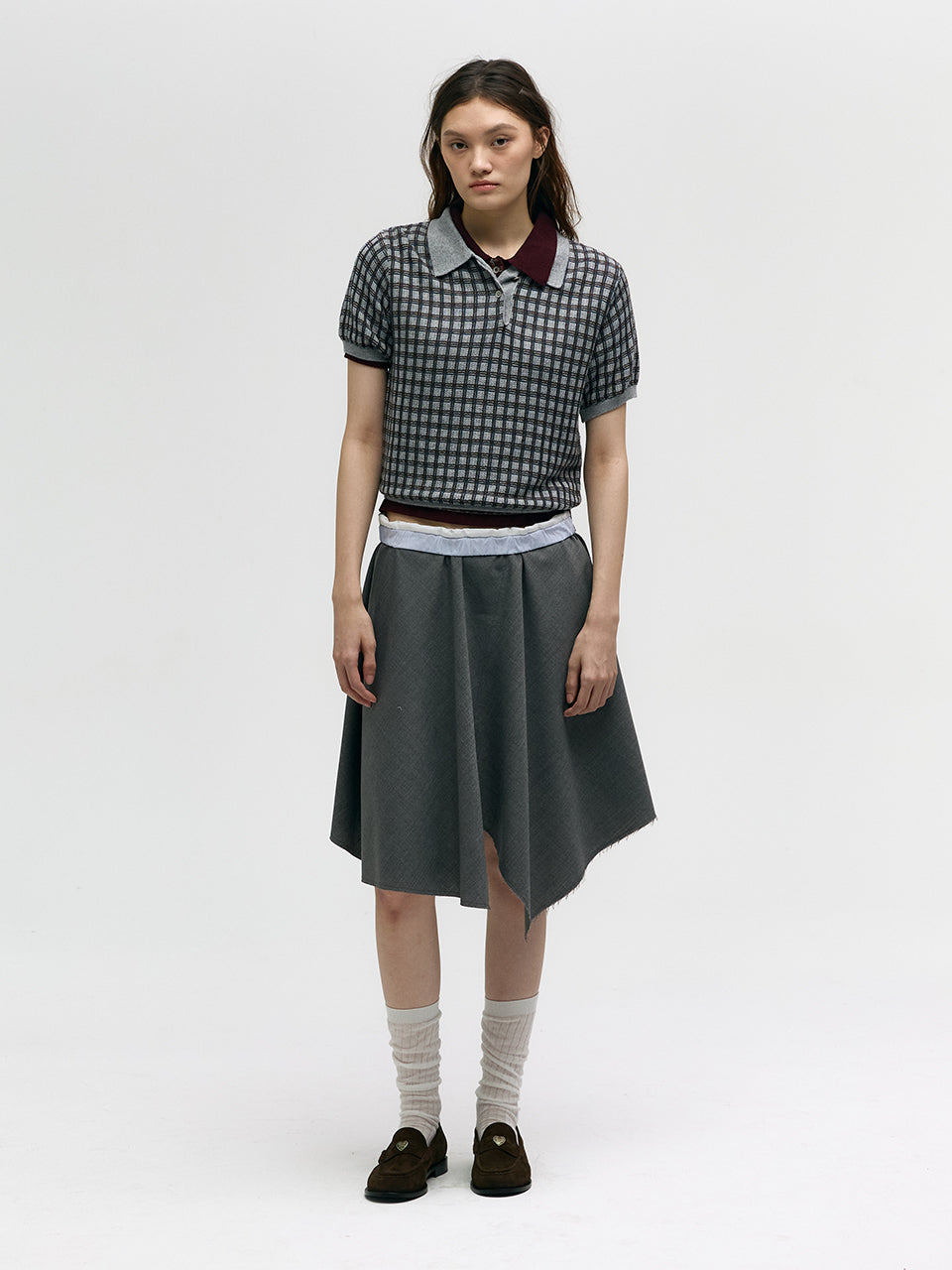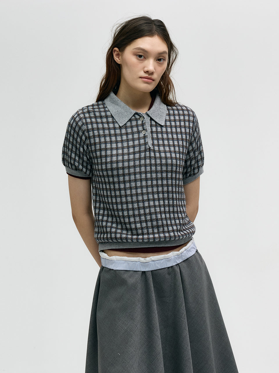 - Retro-inspired checkered PK short-sleeve knit