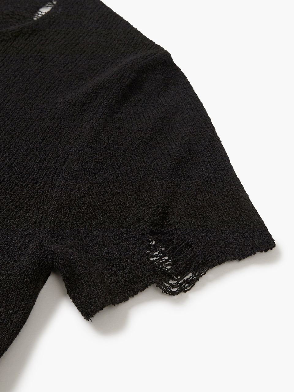 - Made from loosely woven boucle yarn for a breathable short-sleeve knit top