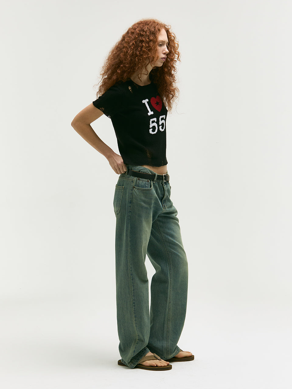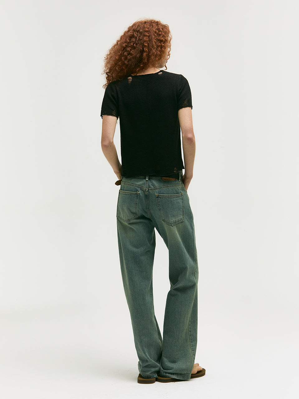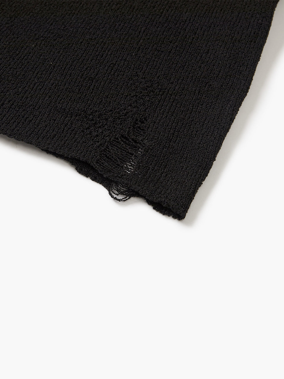 - Distressed and grid-patterned knit details