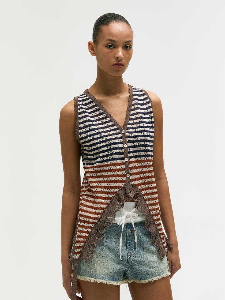 - Retro-inspired striped knit vest