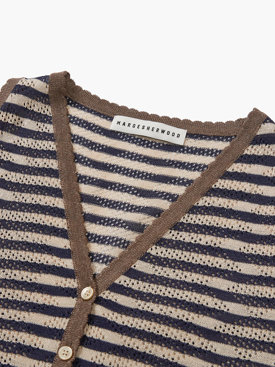 - Finished with engraved mother-of-pearl buttons featuring the Margesherwood logo