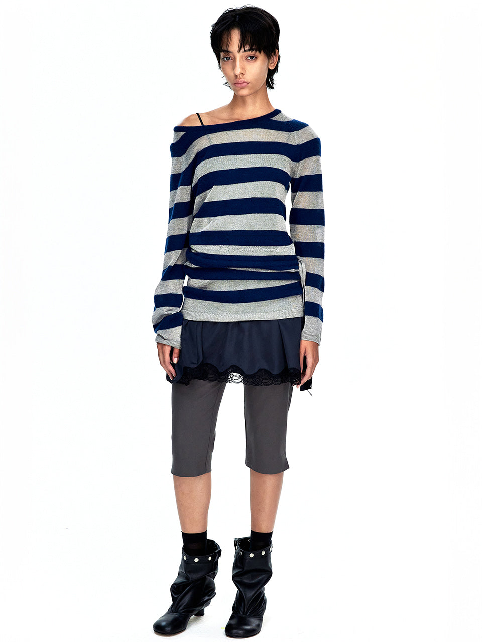 -Lightweight yet warm, featuring striped accents in metallic and mohair yarns