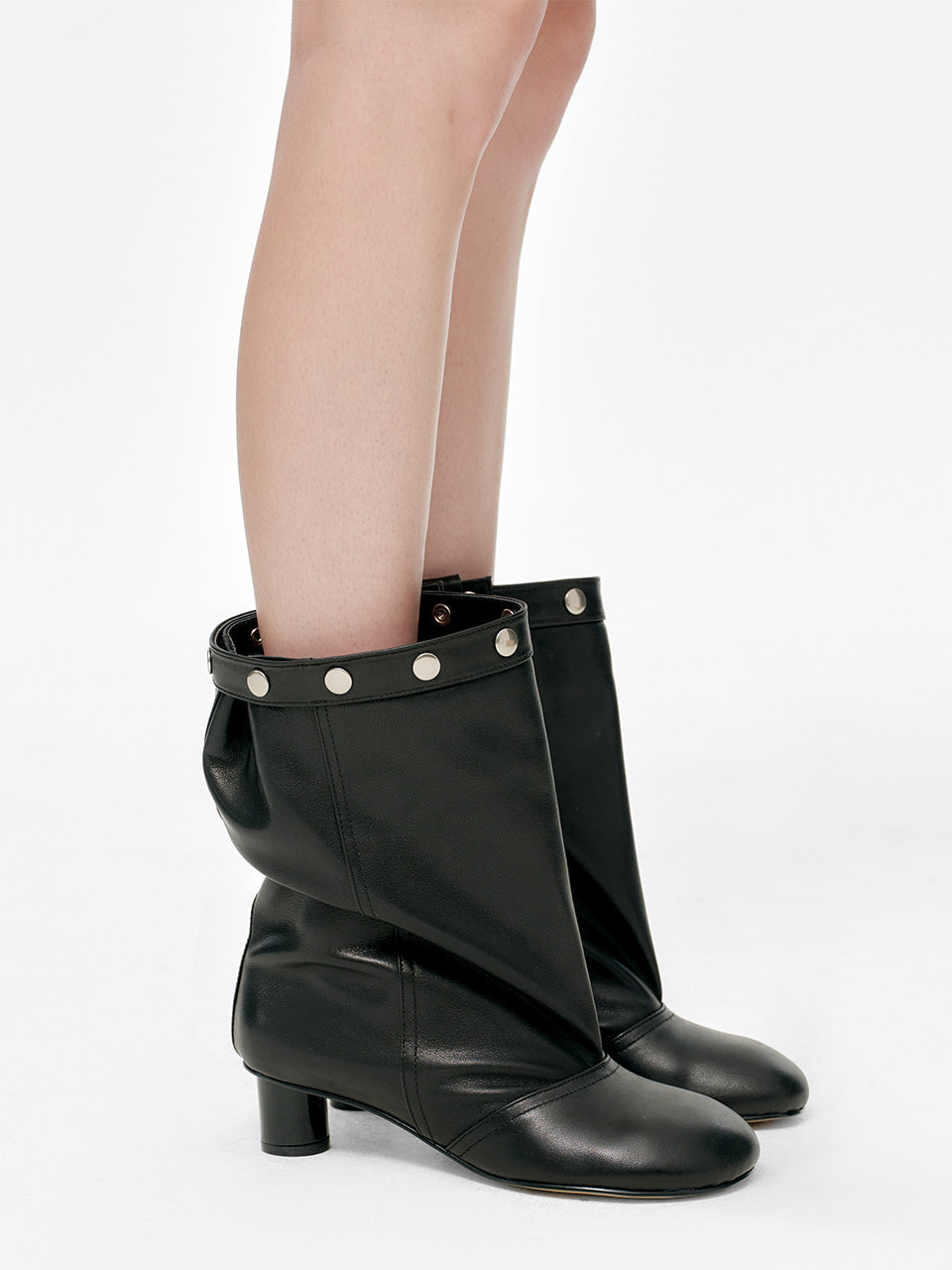 SNAP MIDDLE LEATHER BOOTS_black