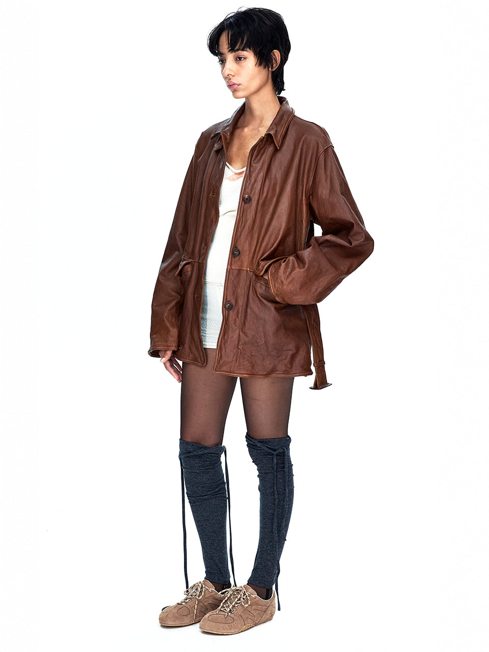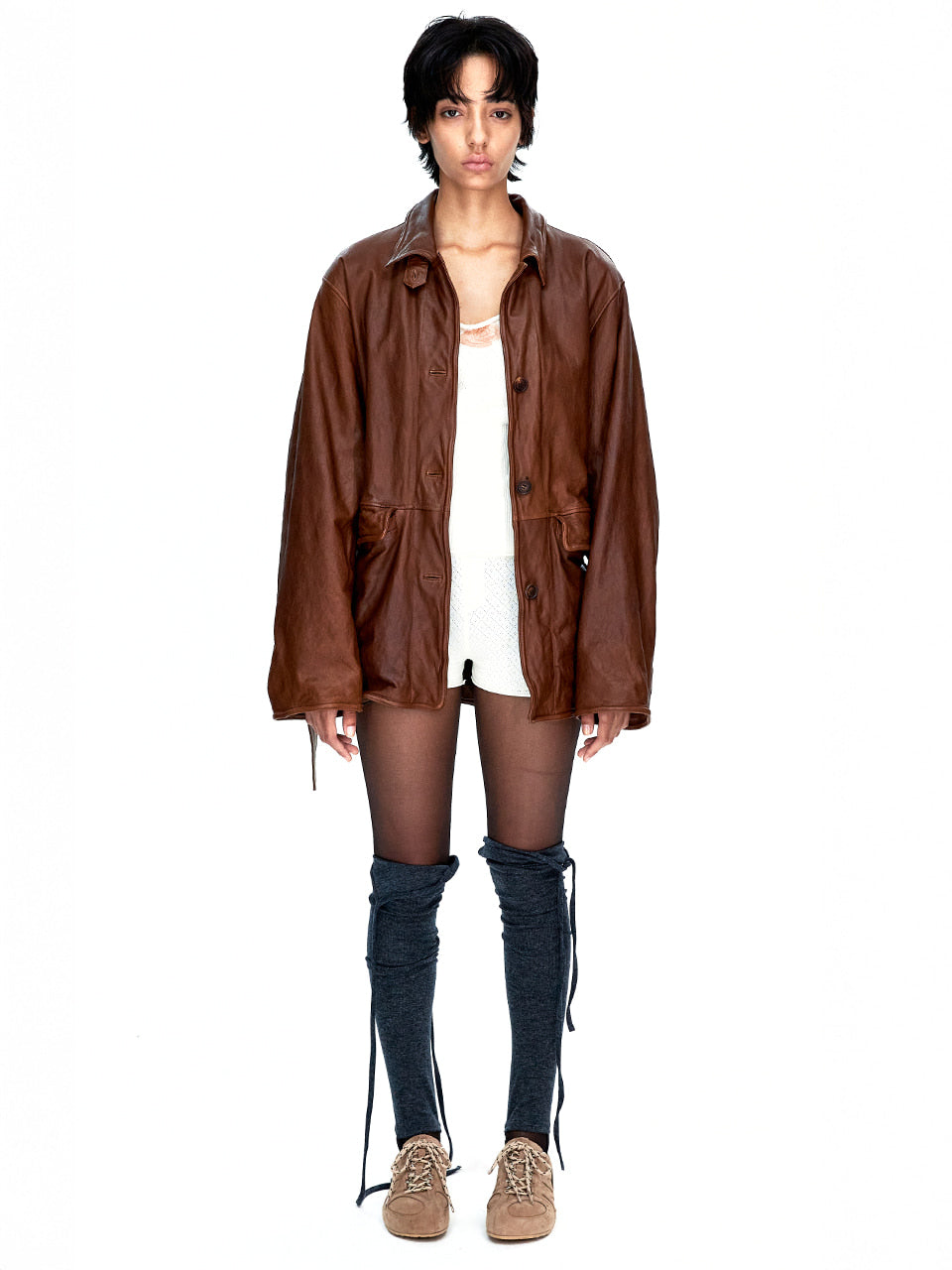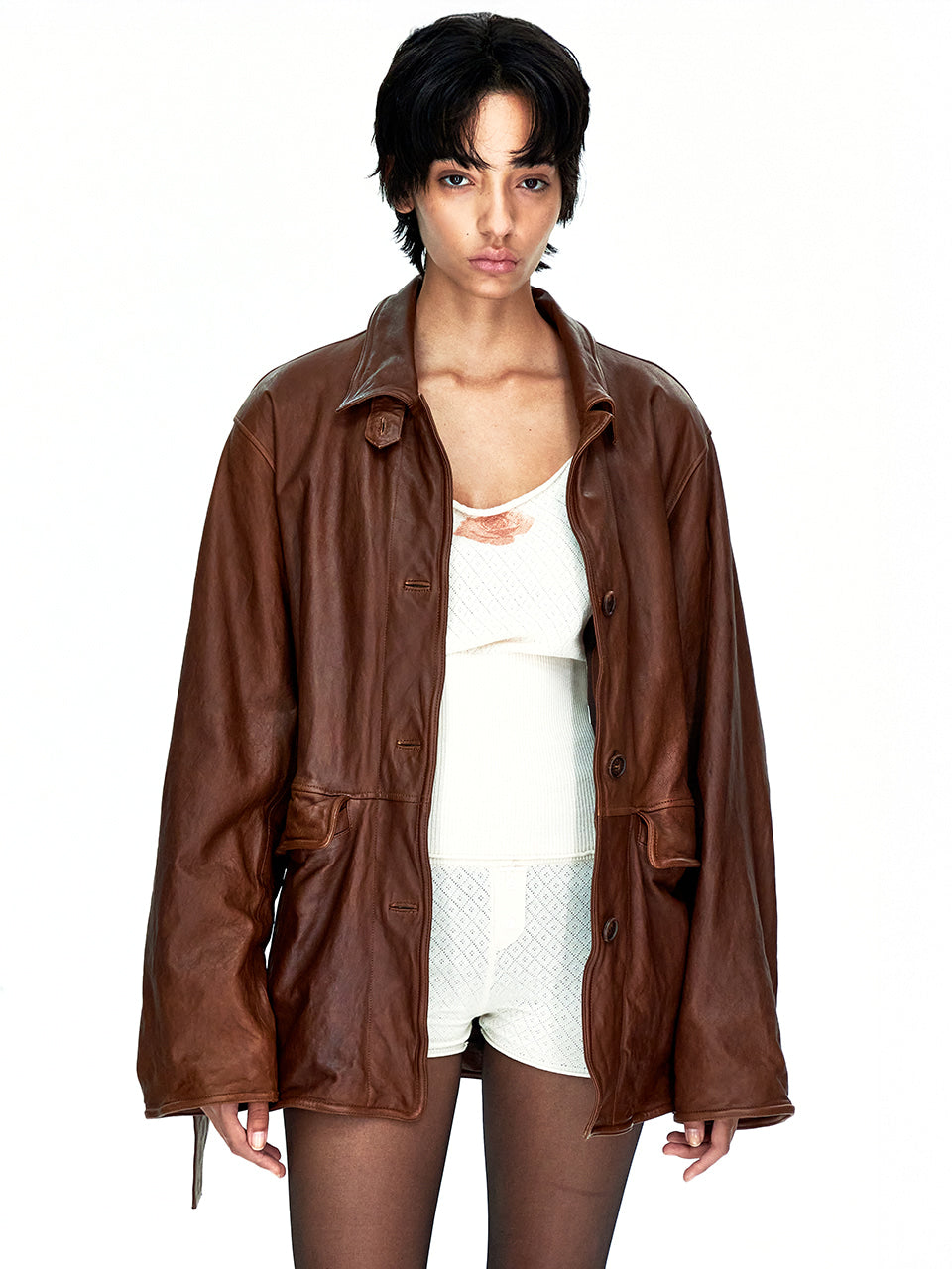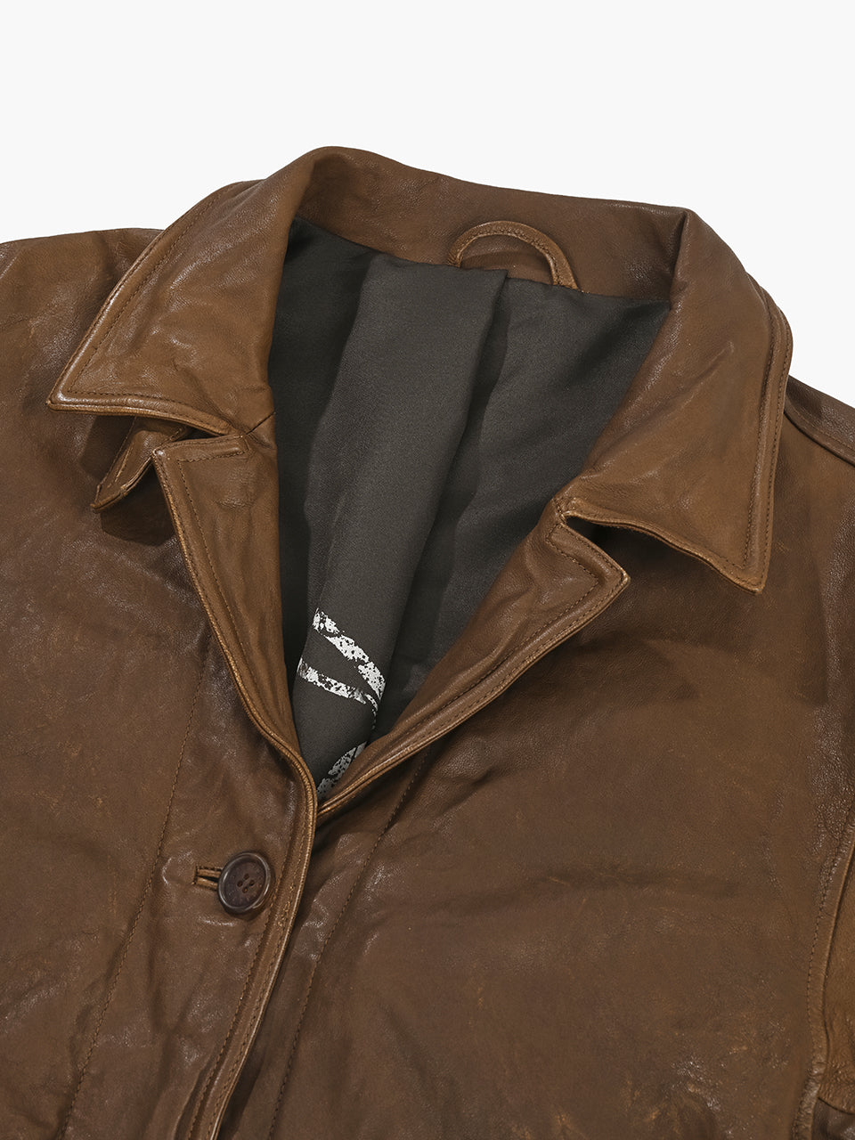 *This product is made from genuine leather with a special washing process to create a vintage mood. Scratches, wrinkles, and grain marks that appear are not defects but intentional design elements of the leather and the washing process. They reflect the unique texture and individuality that only real leather can offer.