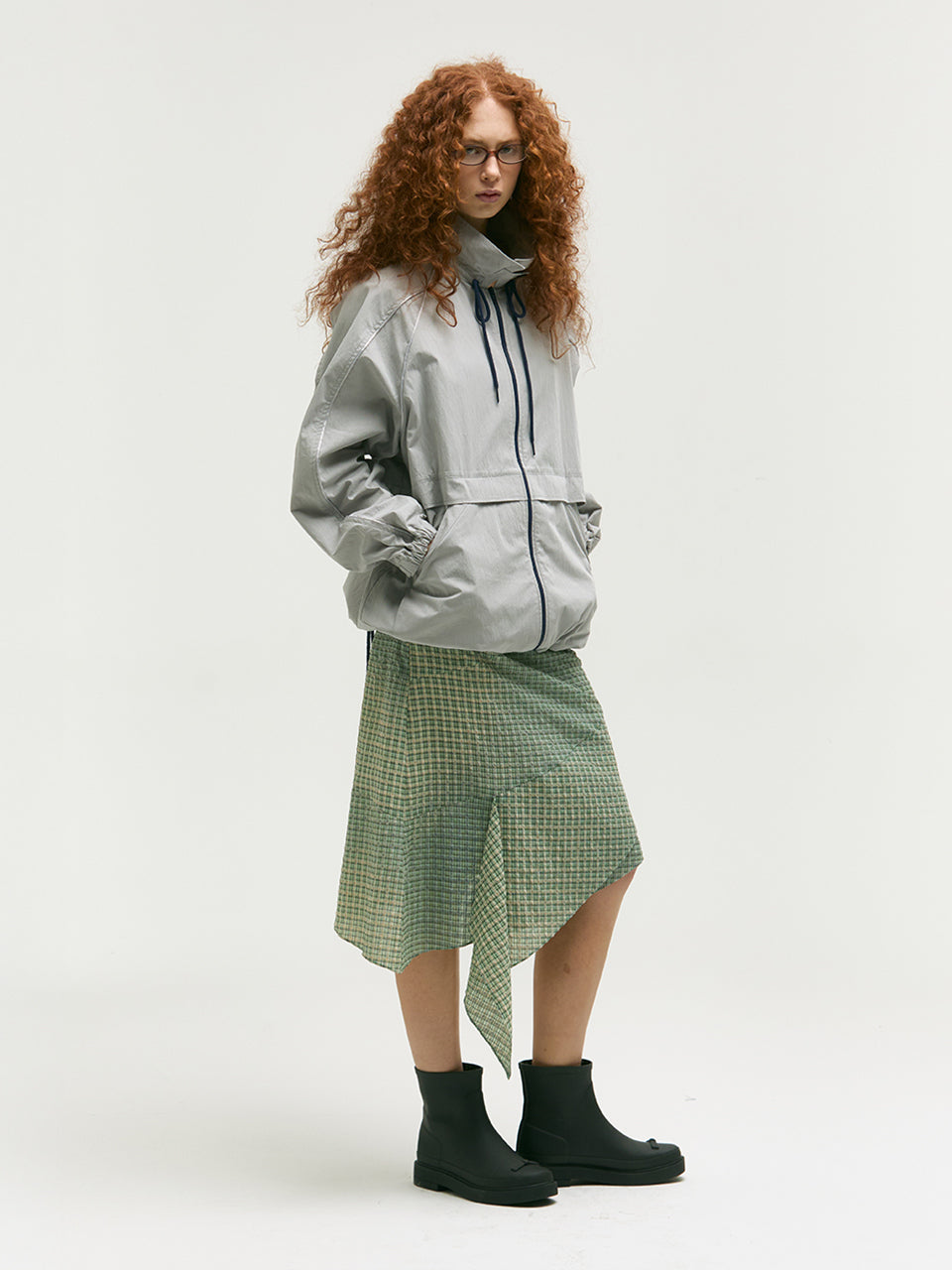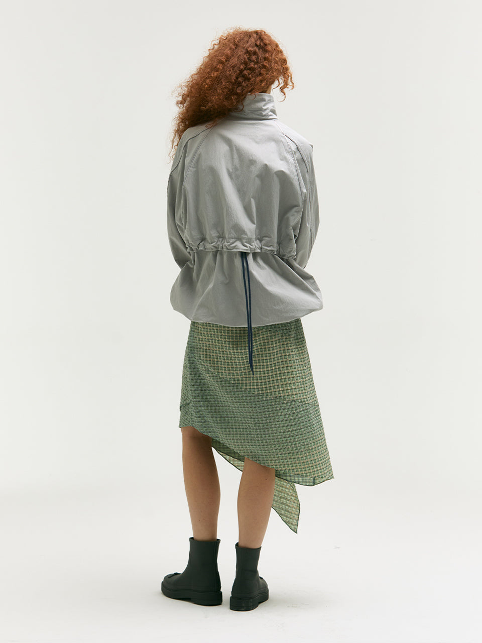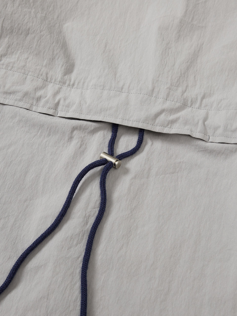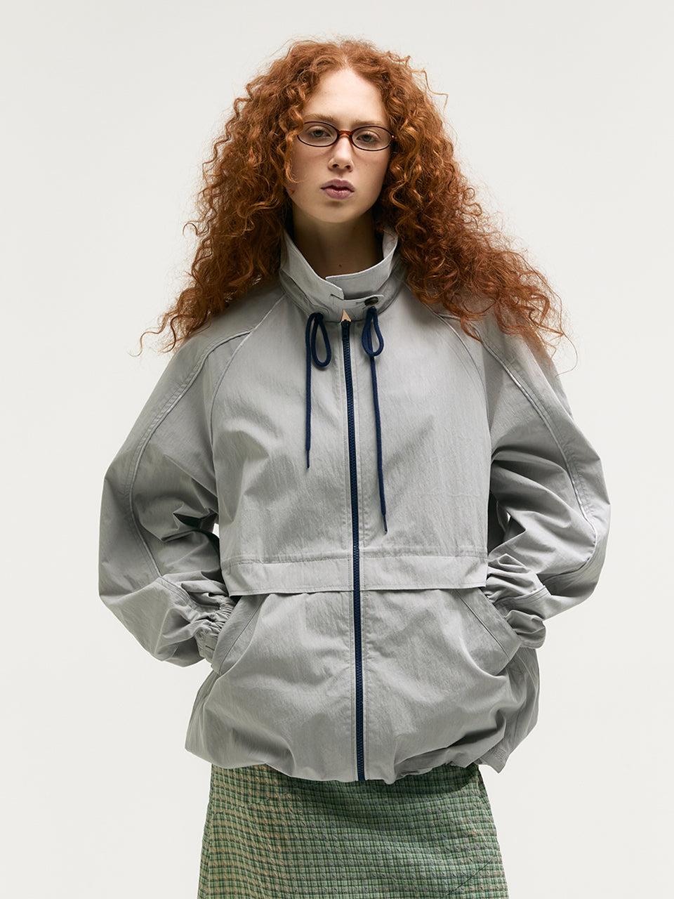 - Adjustable drawstrings at the waist and hem create a voluminous silhouette