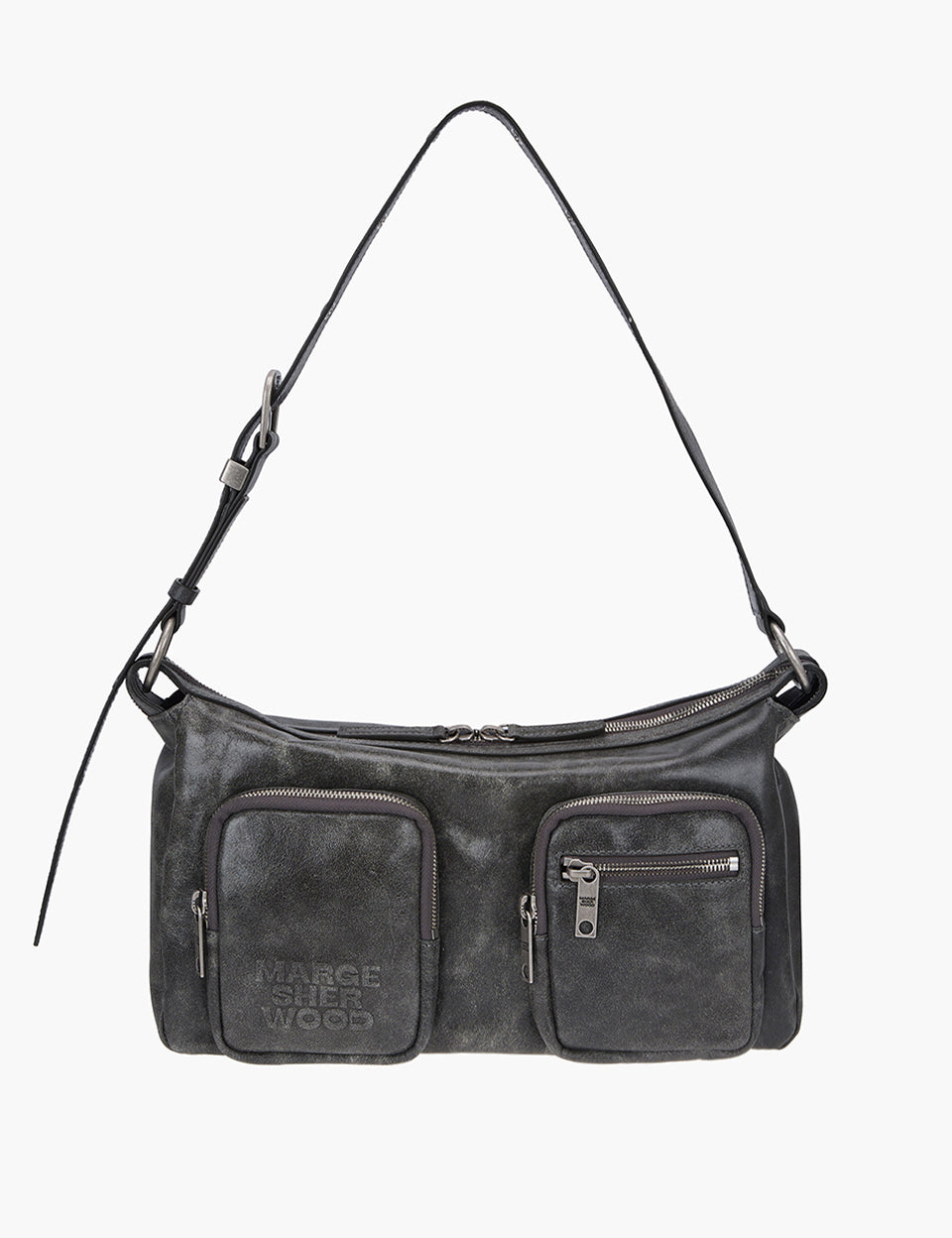 OUTPOCKET HOBO_white+grey two-tone cracked