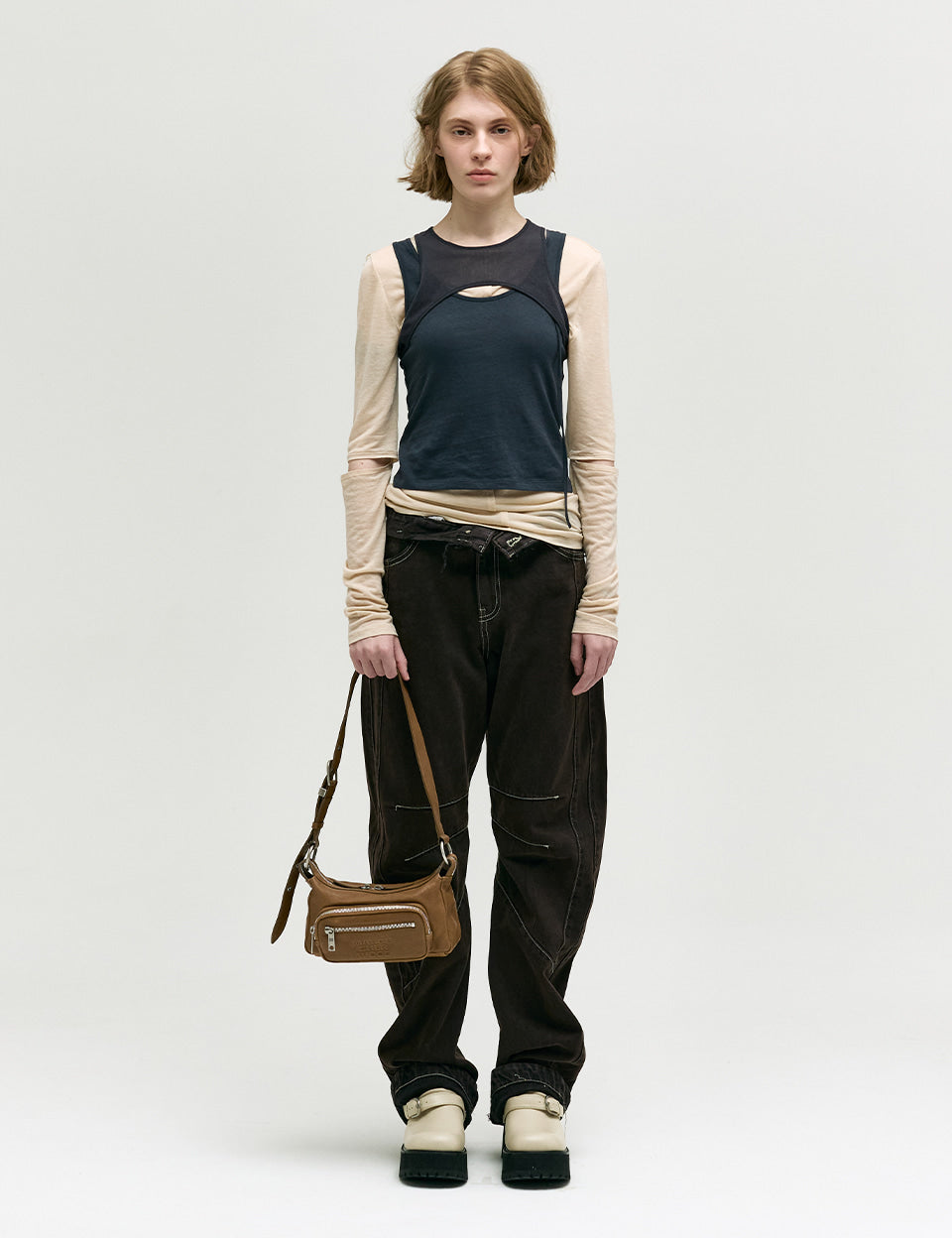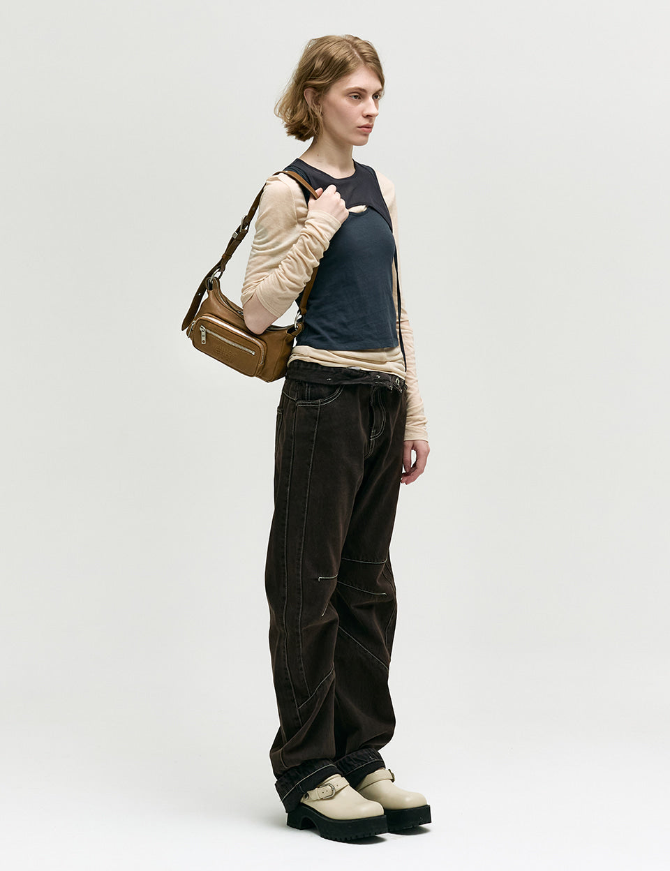 OUTPOCKET HOBO MINI_washed brown pull-up