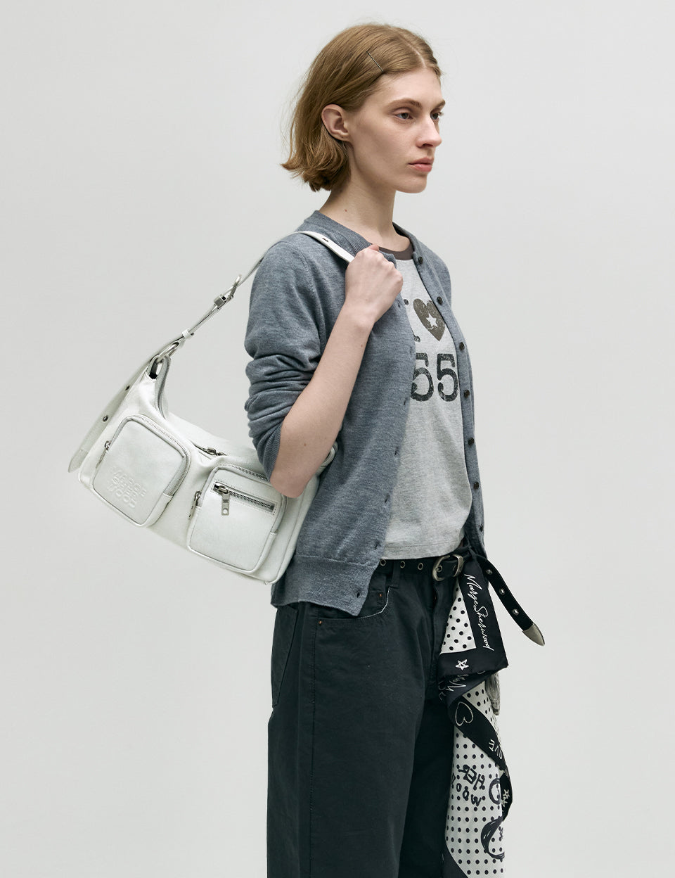 OUTPOCKET HOBO_light grey glossy plain