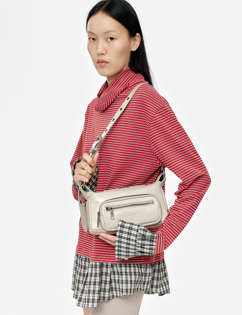 OUTPOCKET HOBO MINI_light grey glossy plain