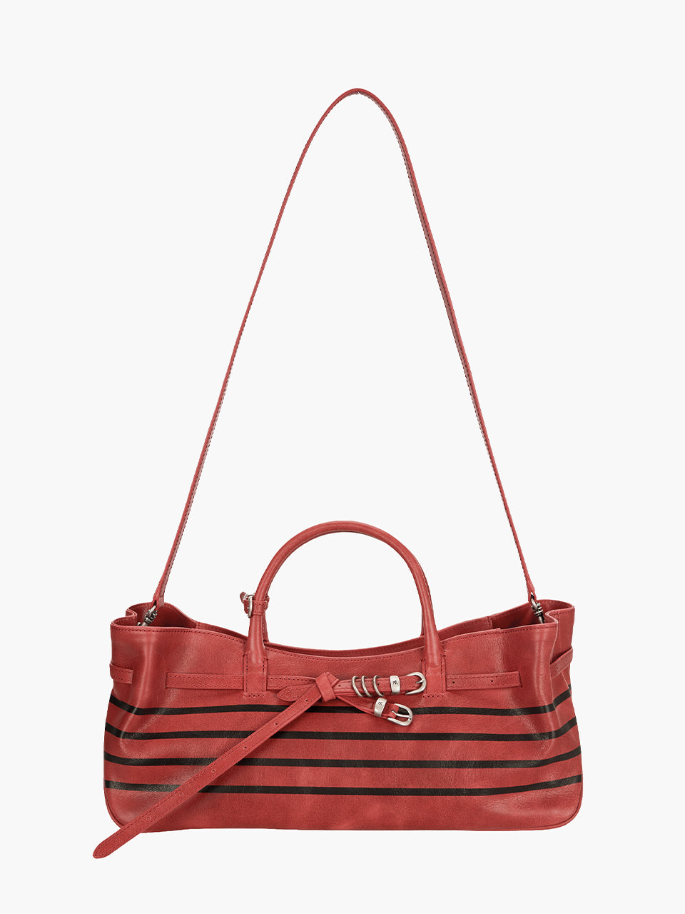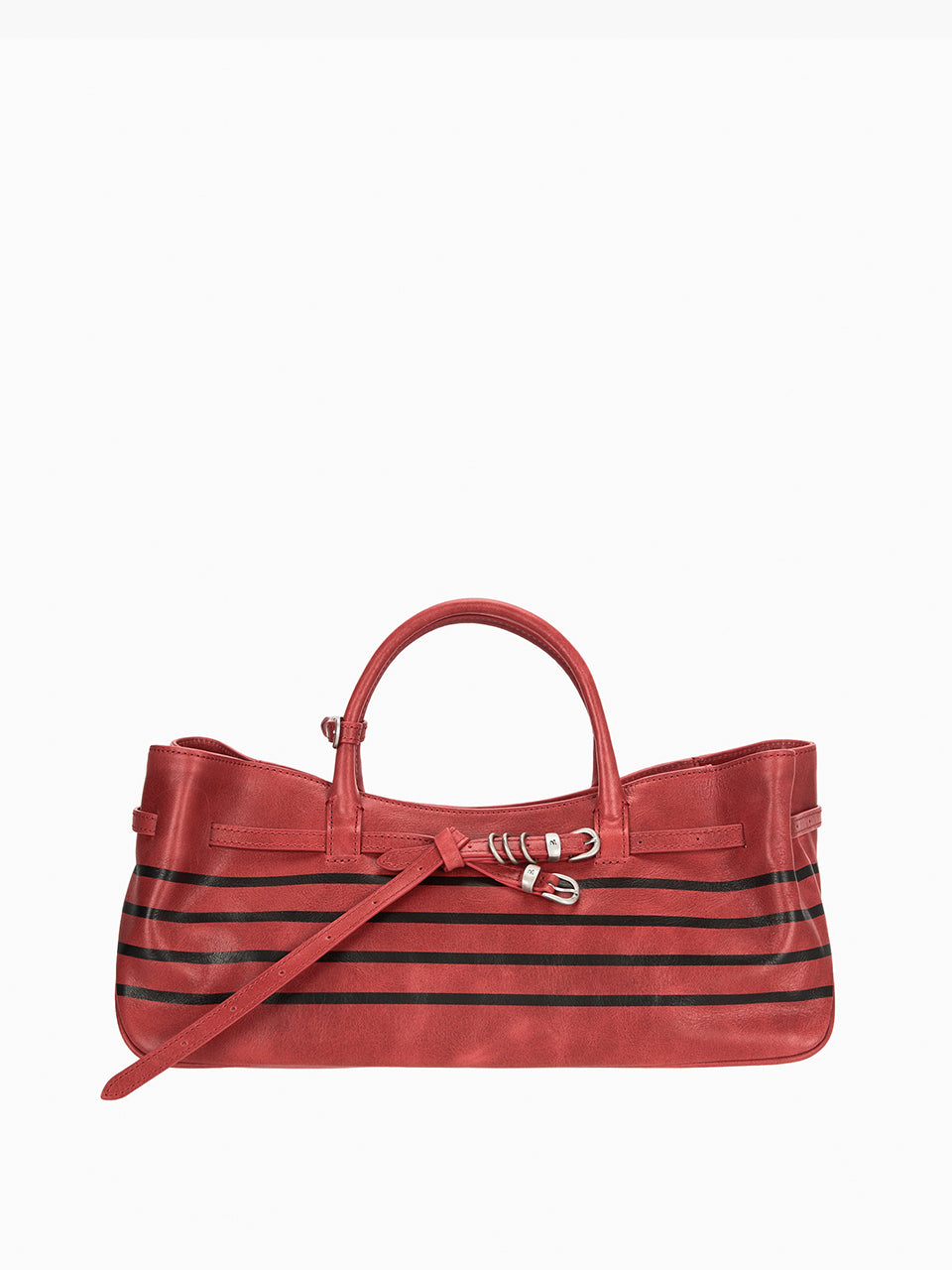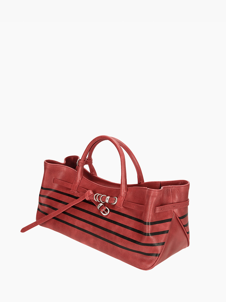 · East-west structured bag featuring a knotted belt strap