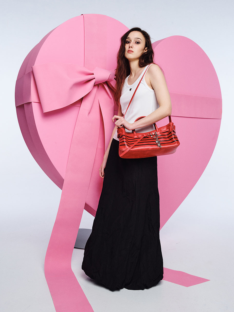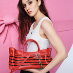 · Pull the knot details on both sides to adjust the belt strap length and shape of the bag