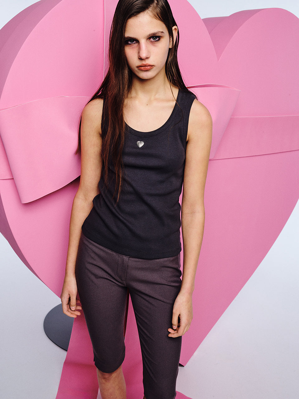MGSWD | PEANUTS HEART PENDANT SLEEVELESS T-SHIRT_charcoal