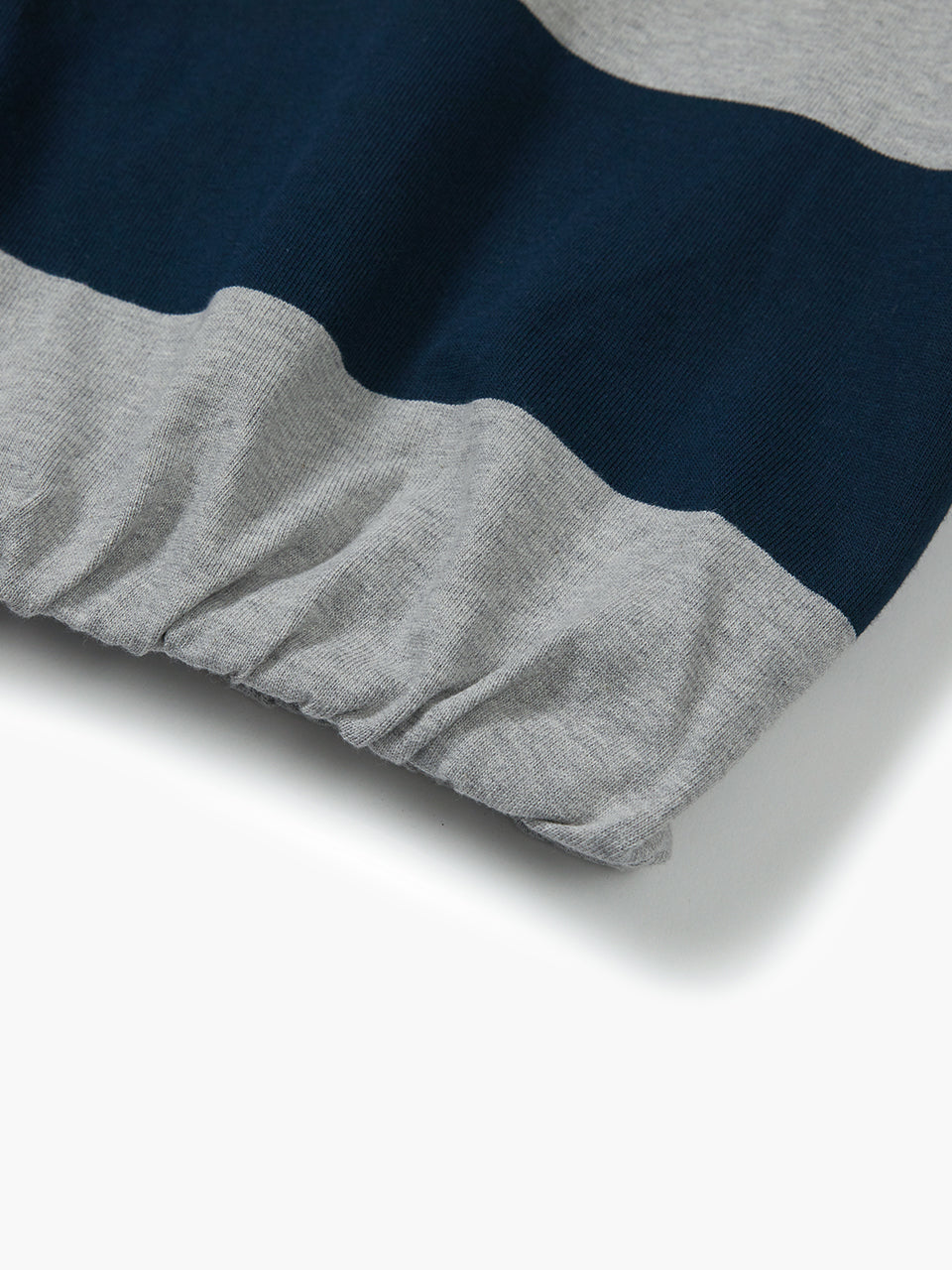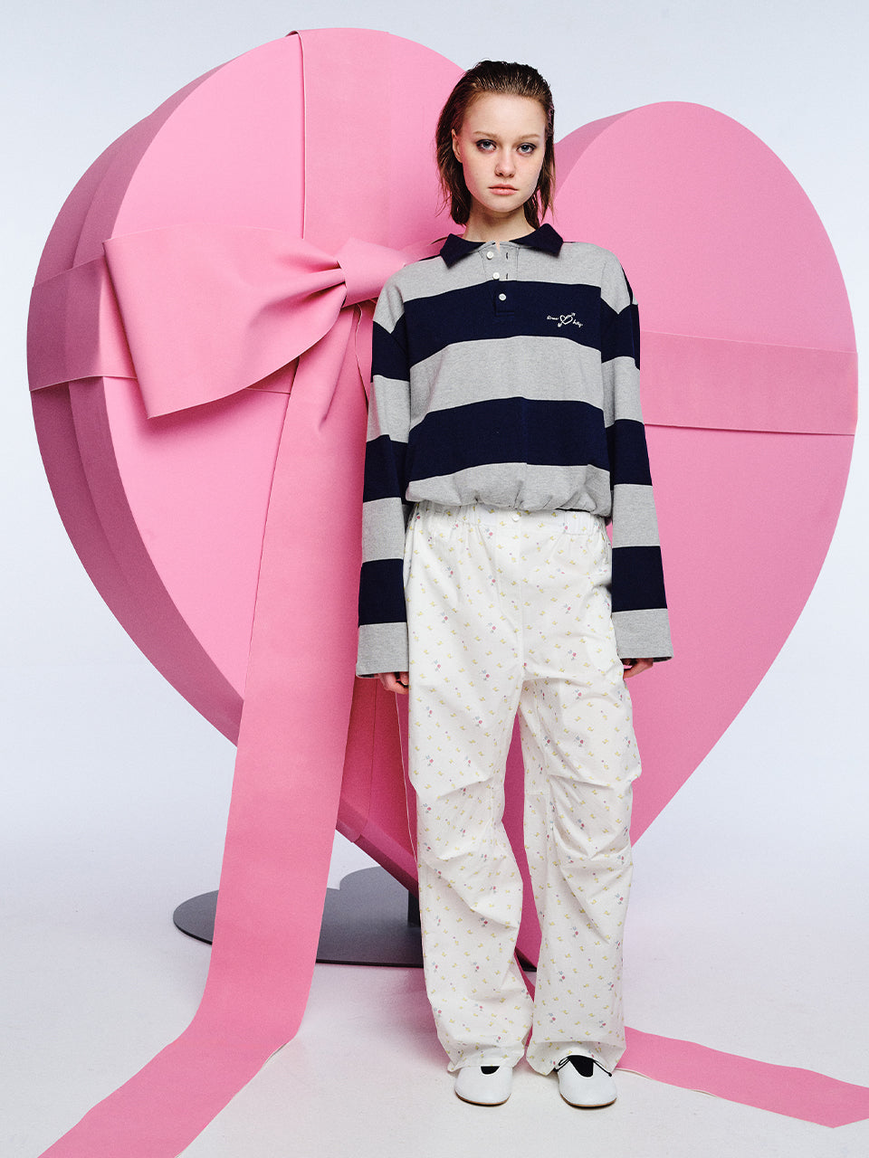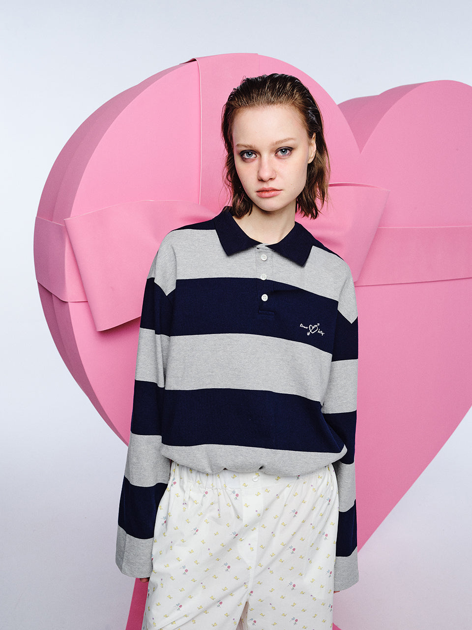 'Inspired by the stripe pattern worn by ‘LINUS,’ this reinterpreted design features a voluminous balloon silhouette, creating a polo shirt with a casual yet witty mood.