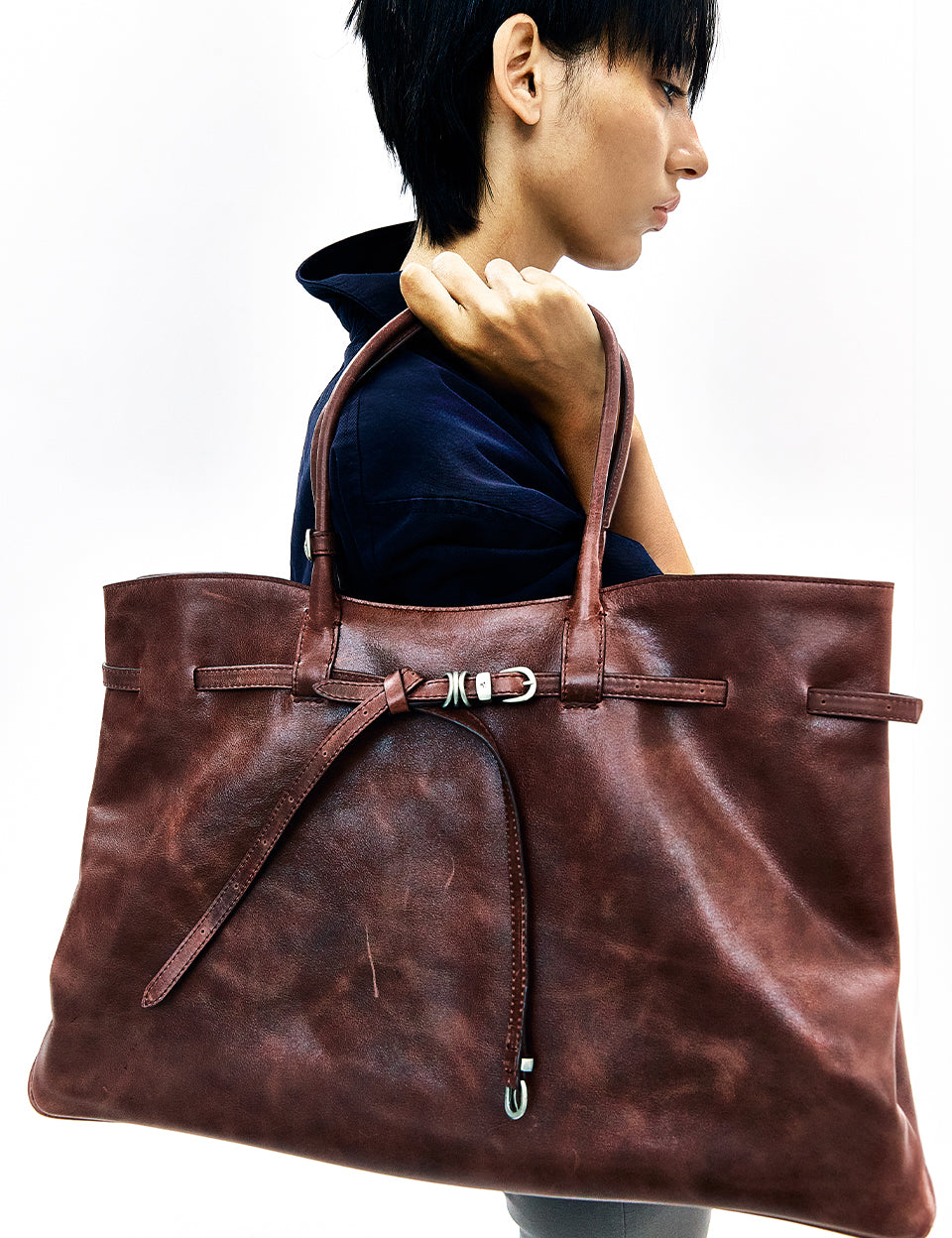 GRANDMA USED BAG LARGE_washed brown pull-up