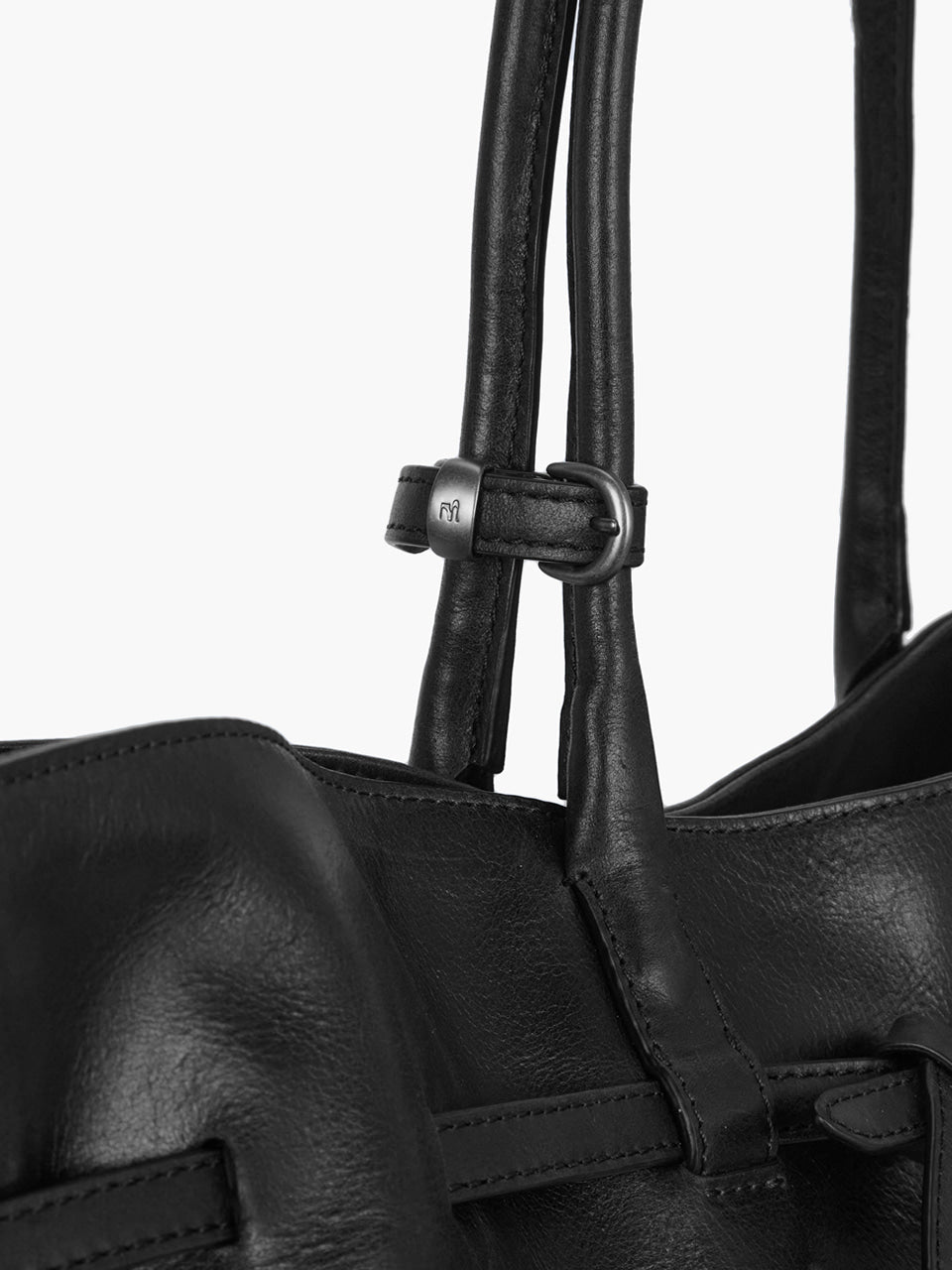 · Pull the knot details on both sides to adjust the belt strap length and shape of the bag